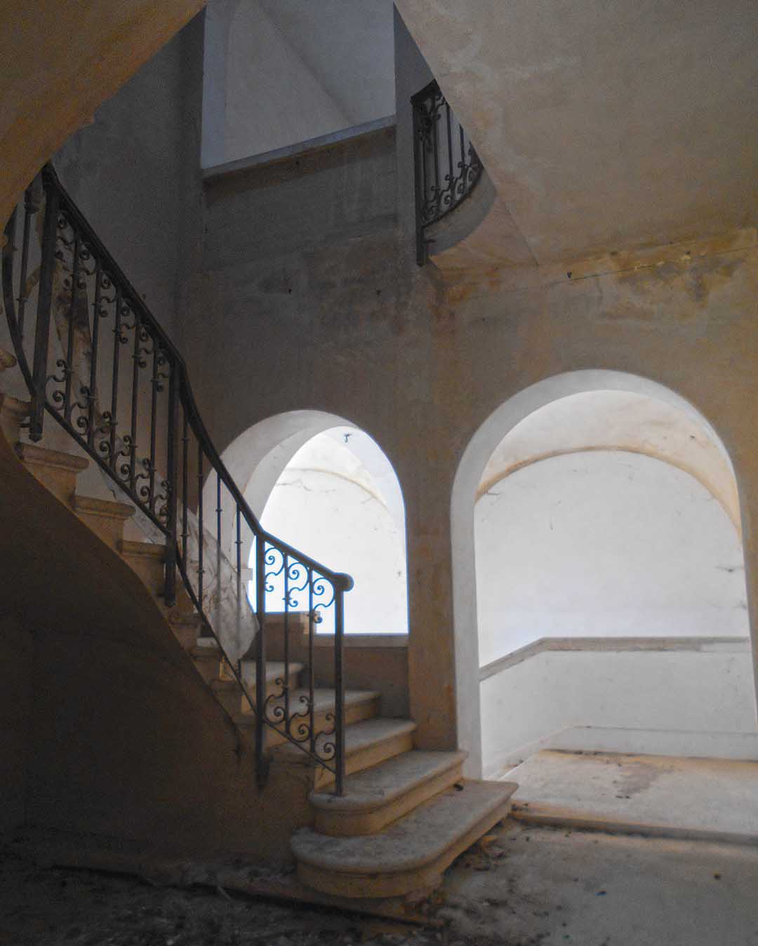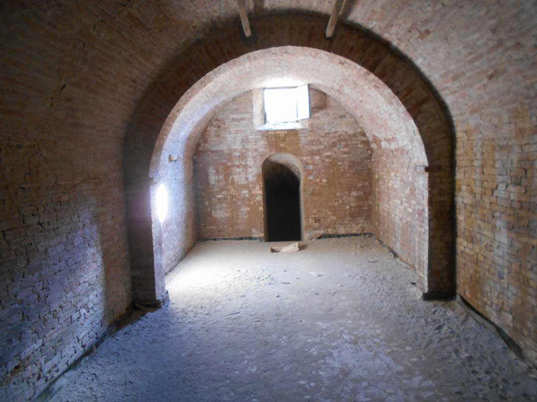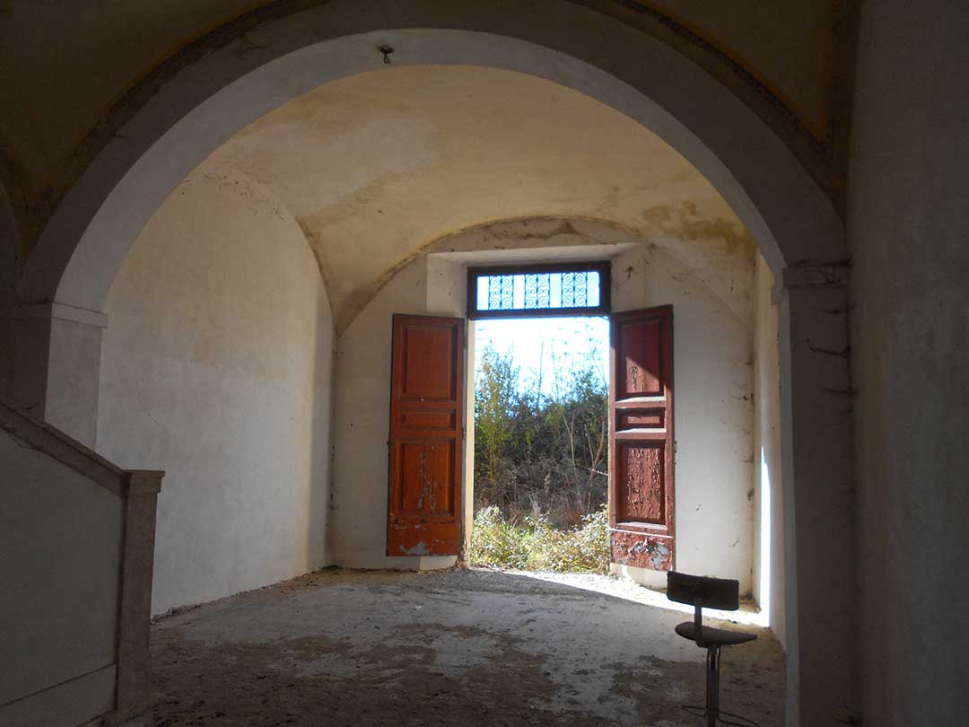 A) Villa padronale composta da tre piani fuori terra e di un piano seminterrato; al piano terreno, sono presenti un’ampia cantina con archi e volte, tinaia adiacente, ingresso con scala padronale, secondo ingresso, due vani, disimpegni ed accessori; una rampa interna conduce al primo piano interrato composto da cantina cieca, dalla quale si accede ad un passaggio sotterraneo (piano secondo interrato in transito al di sotto della cappella) con uscita verso i terreni a valle, attraverso un ingresso coperto (tettoia).