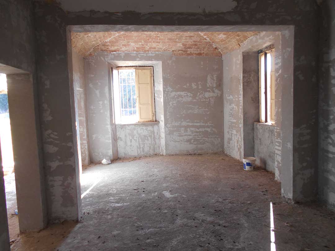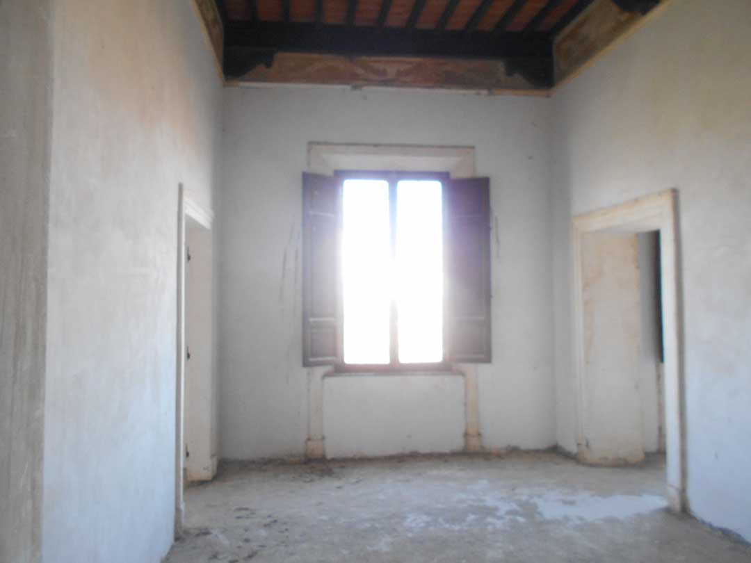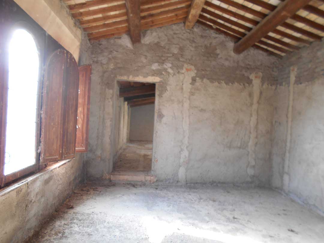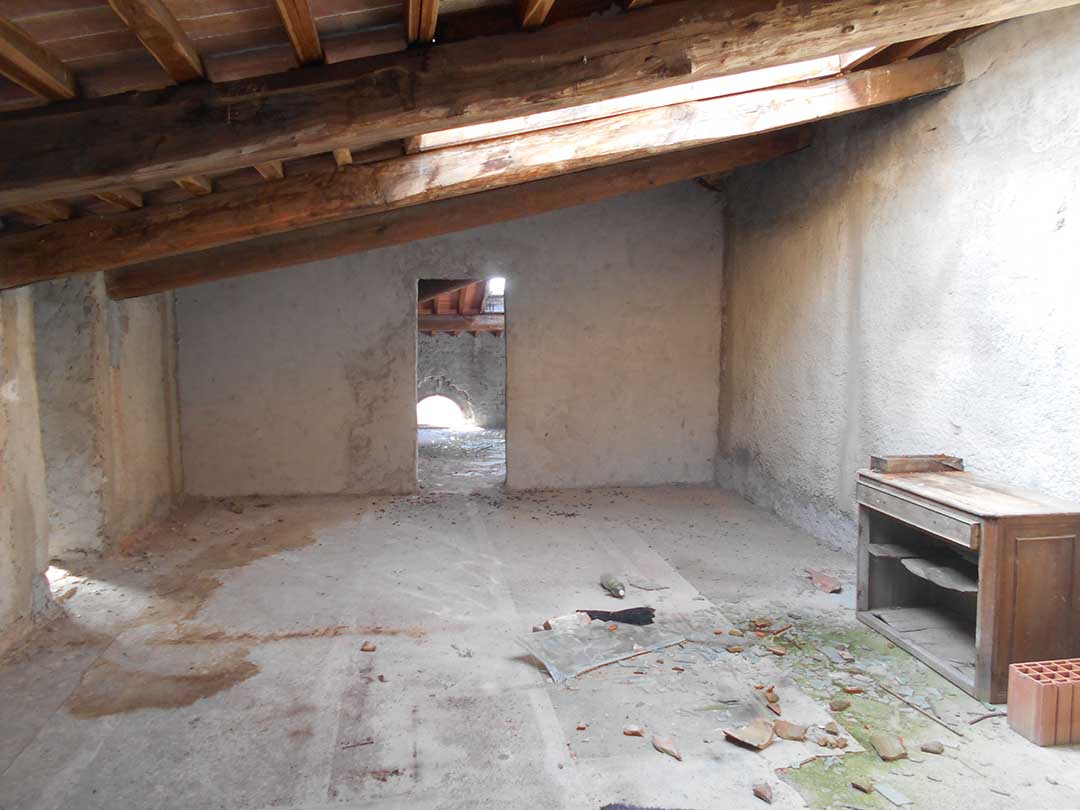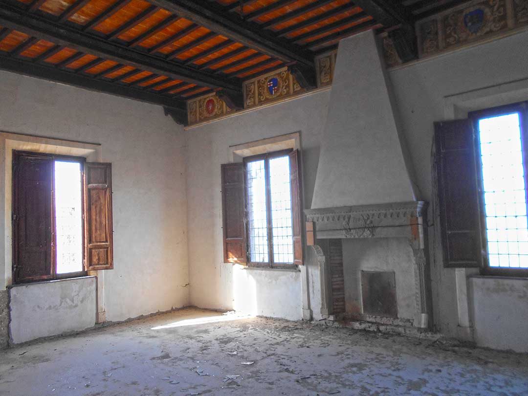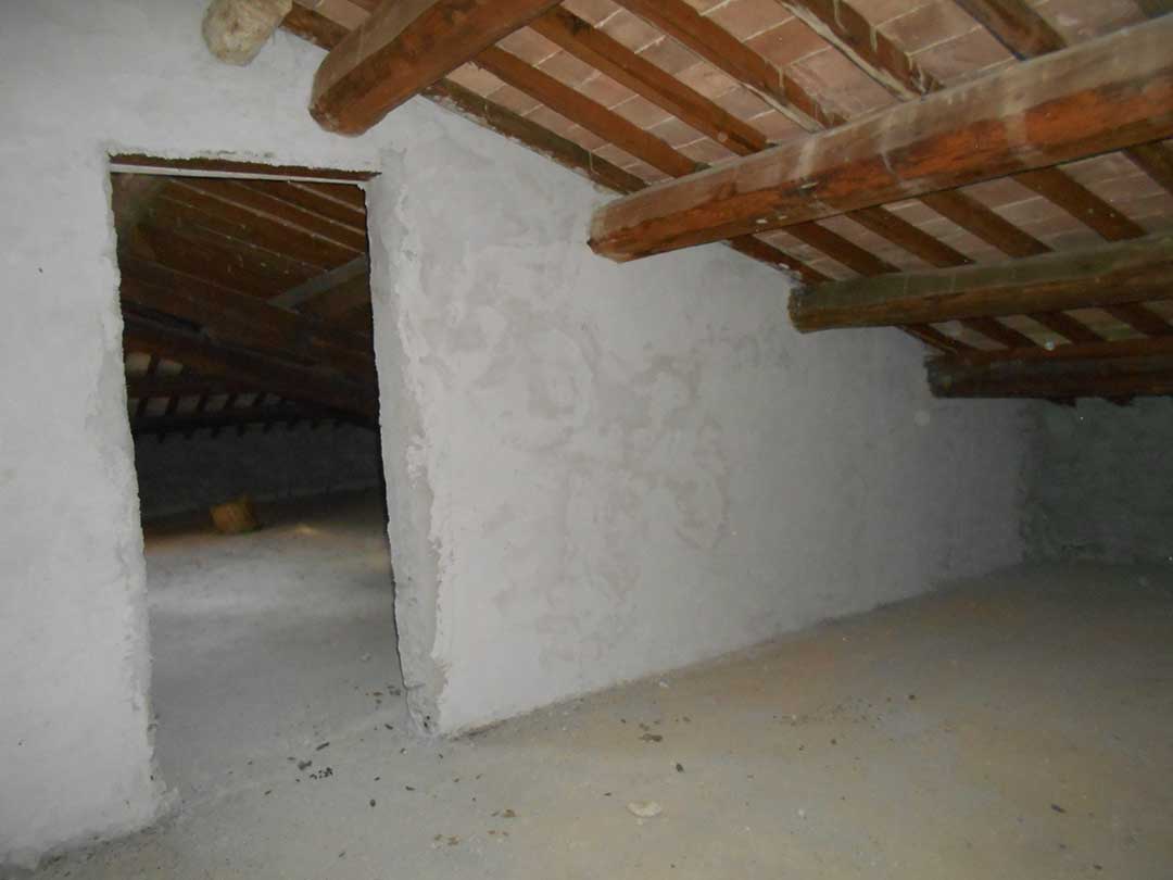 Dalla menzionata scala al piano terra si accede al piano primo composto complessivamente da 12 vani principali (tra i quali ampio salone con camino), due grandi disimpegni e vani accessori. Al piano secondo si trovano vari locali di soffitta e sottotetto occupanti l’intera proiezione dei piani sottostanti; l’accesso alle soffitte avviene esclusivamente dal piano secondo dell’unità al punto B) che segue.