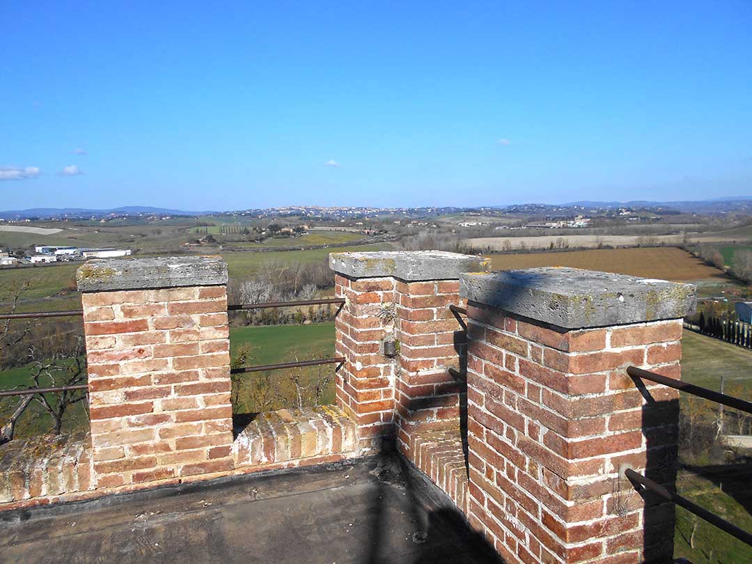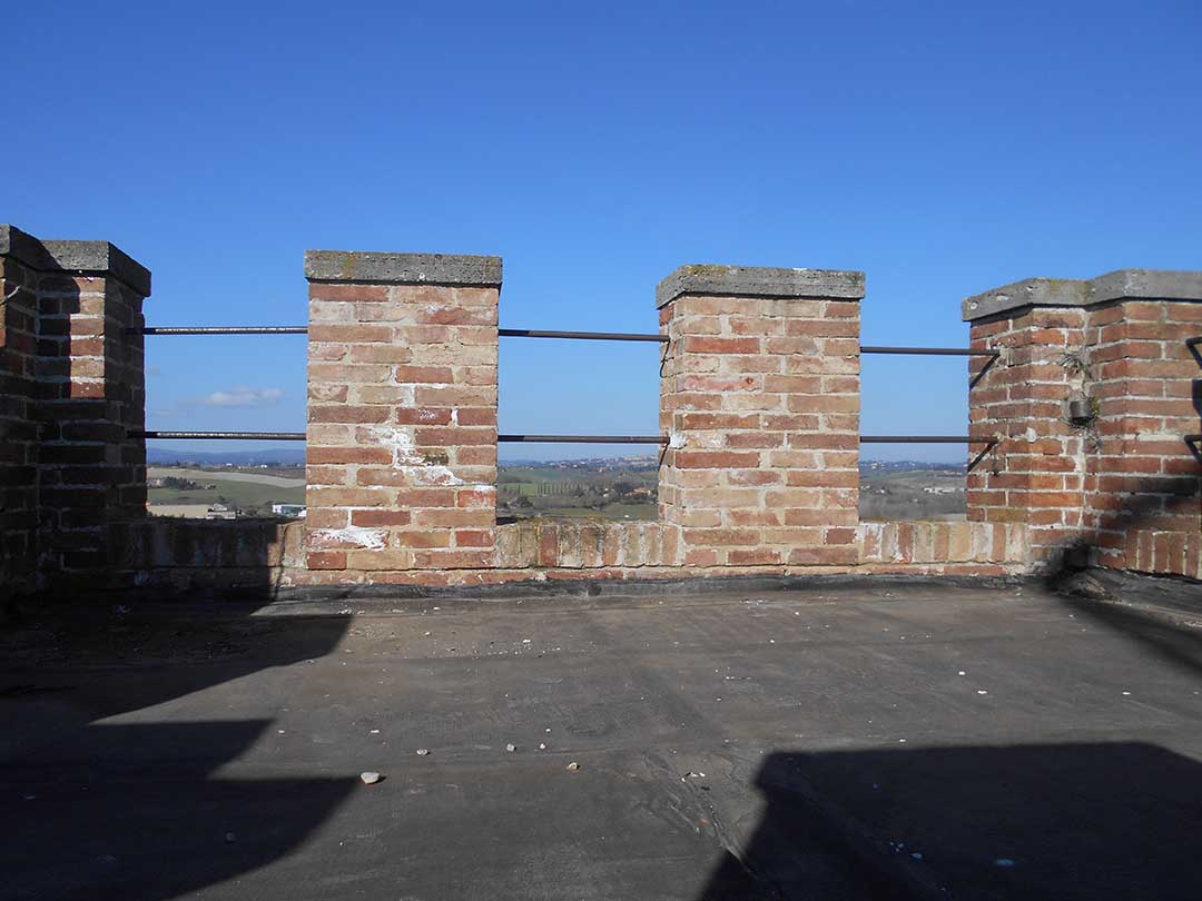 B) Appartamento di civile abitazione ubicato nello stesso corpo di fabbrica della Villa che si sviluppa su tre piani collegati da scala interna che costituisce il corpo “torre” della villa, sviluppantesi per quattro piani, ben oltre la quota dei tetti, oltre lastrico sommitale panoramico con parapetto ove sorgono i merli decorativi.