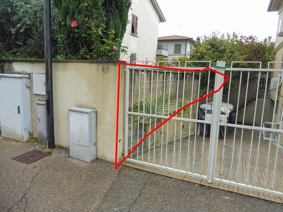 Area urbana di 17 mq comprendente un vialetto intercluso posto all’interno di lotto di altra proprietà ed esterno alla procedura esecutiva.