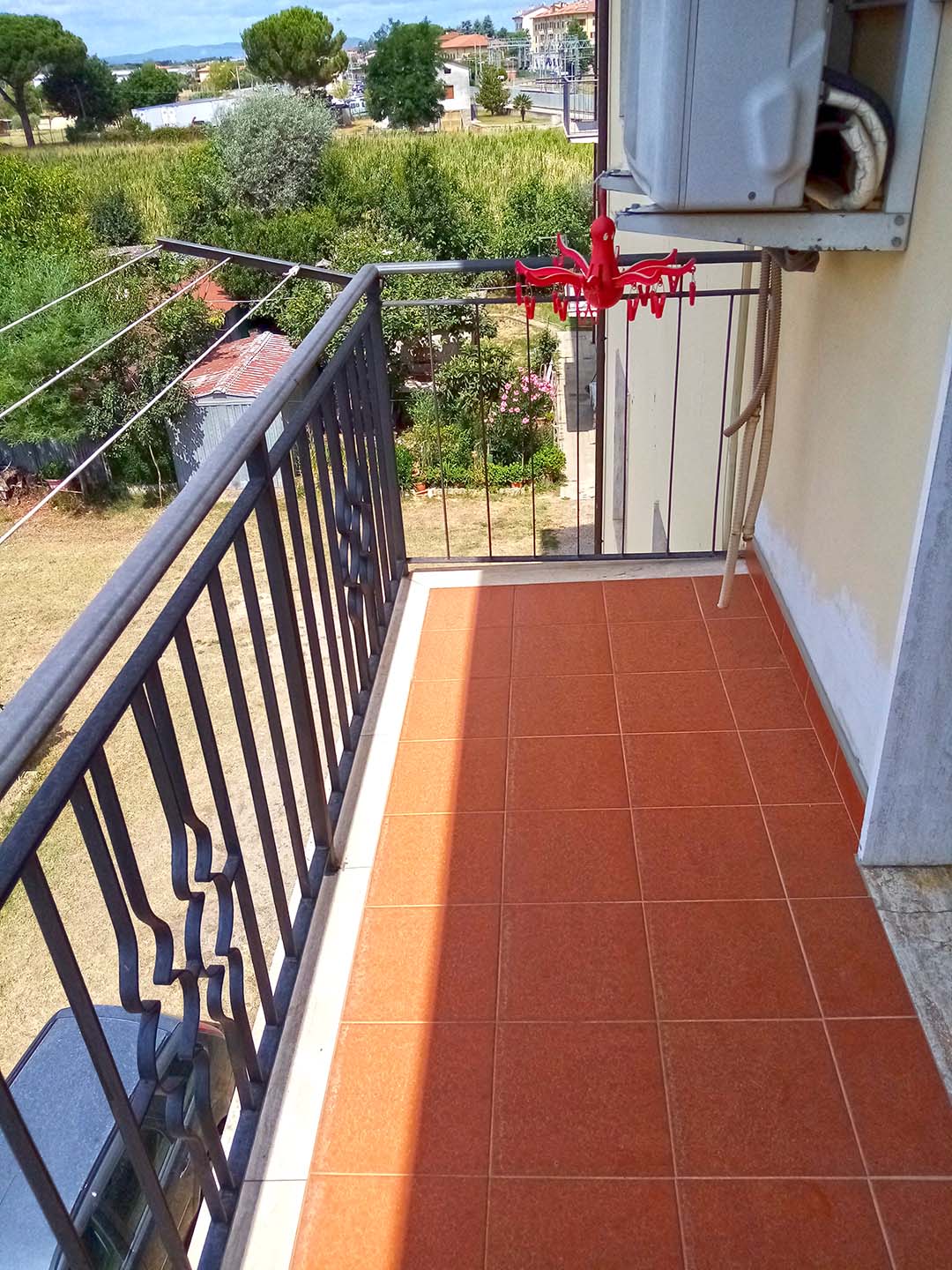 - al piano secondo, con accesso dal vano scala a comune, da soggiorno-pranzo con angolo cottura, disimpegni, ripostiglio, tre camere, bagno, tre balconi;