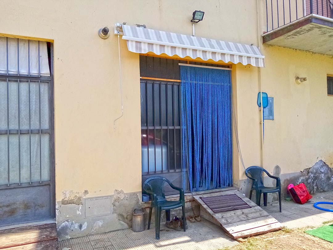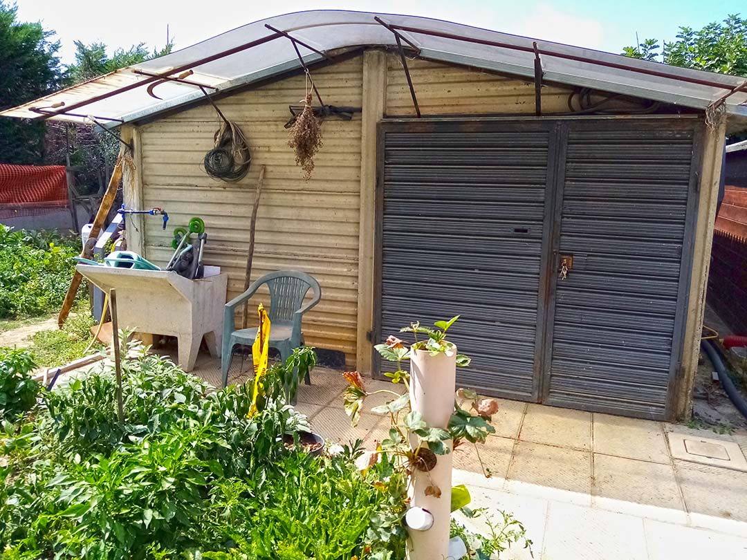 - al piano terreno da locale autorimessa e locale deposito con bagno, tra loro comunicanti e dotati di accesso esterno, nonché da una striscia di terreno, posta sul retro del fabbricato su cui insiste un manufatto;