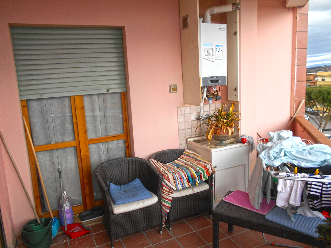 Appartamento di mq 100 al quarto piano composto da ingresso, soggiorno (con camino) e angolo cottura, disimpegno, due camere da letto (una delle quali con bagno), bagno, lavanderia e balcone nonché, al piano quinto, da terrazza; a corredo garage.