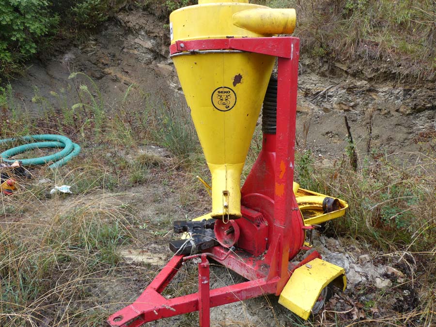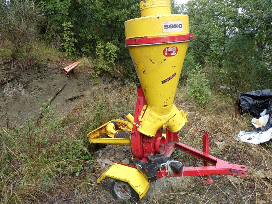Silos per cereali marca Silca 30 q; zappatrice Nardi; spandiconcime; mulino per cereali.