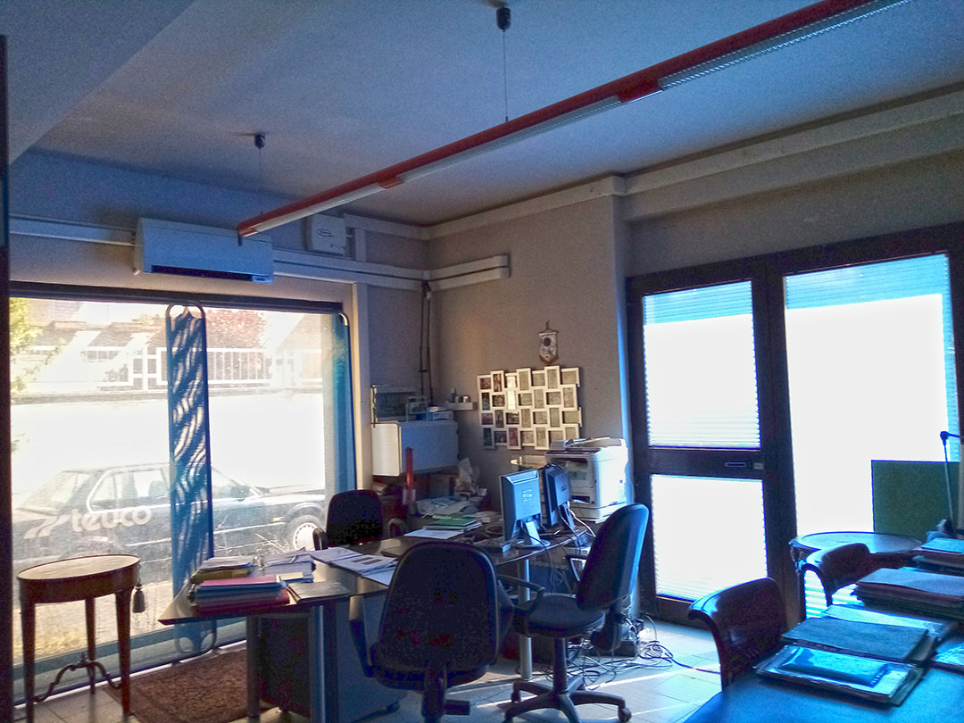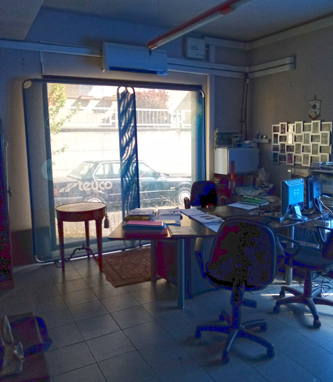 Locale commerciale suddiviso in quattro stanze, disimpegno e bagno. A corredo un locale accessorio esterno destinato a ripostiglio.