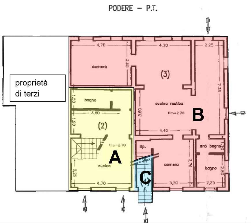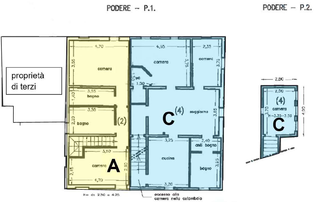 Diritto di piena proprietà su quattro appartamenti ubicati in due fabbricati in corso di definizione e tre corti esclusive. I quattro appartamenti sono stati ricavati dalla ristrutturazione (non ancora ultimata) di un preesistente edificio colonico di tipologia Leopoldina e di un suo annesso. I tre appartamenti ricavati dall'edificio colonico hanno superficie commerciale rispettivamente di 100,30 mq (appartamento “A”), 104,40 mq (appartamento “B”), 112, mq (appartamento “C”), mentre l’appartamento ricavato dall'annesso (appartamento “D”) ha una superficie commerciale di 108 mq.
