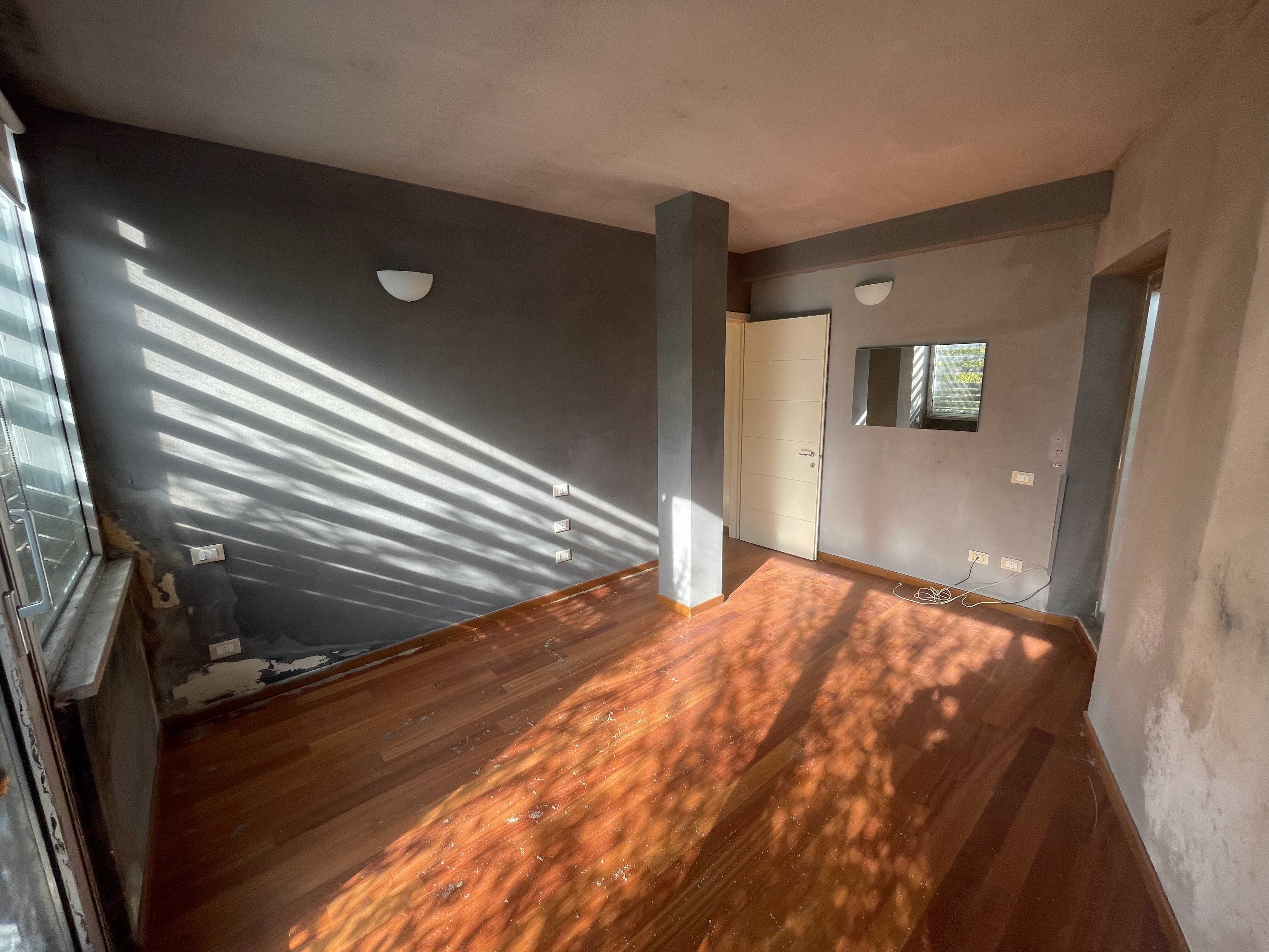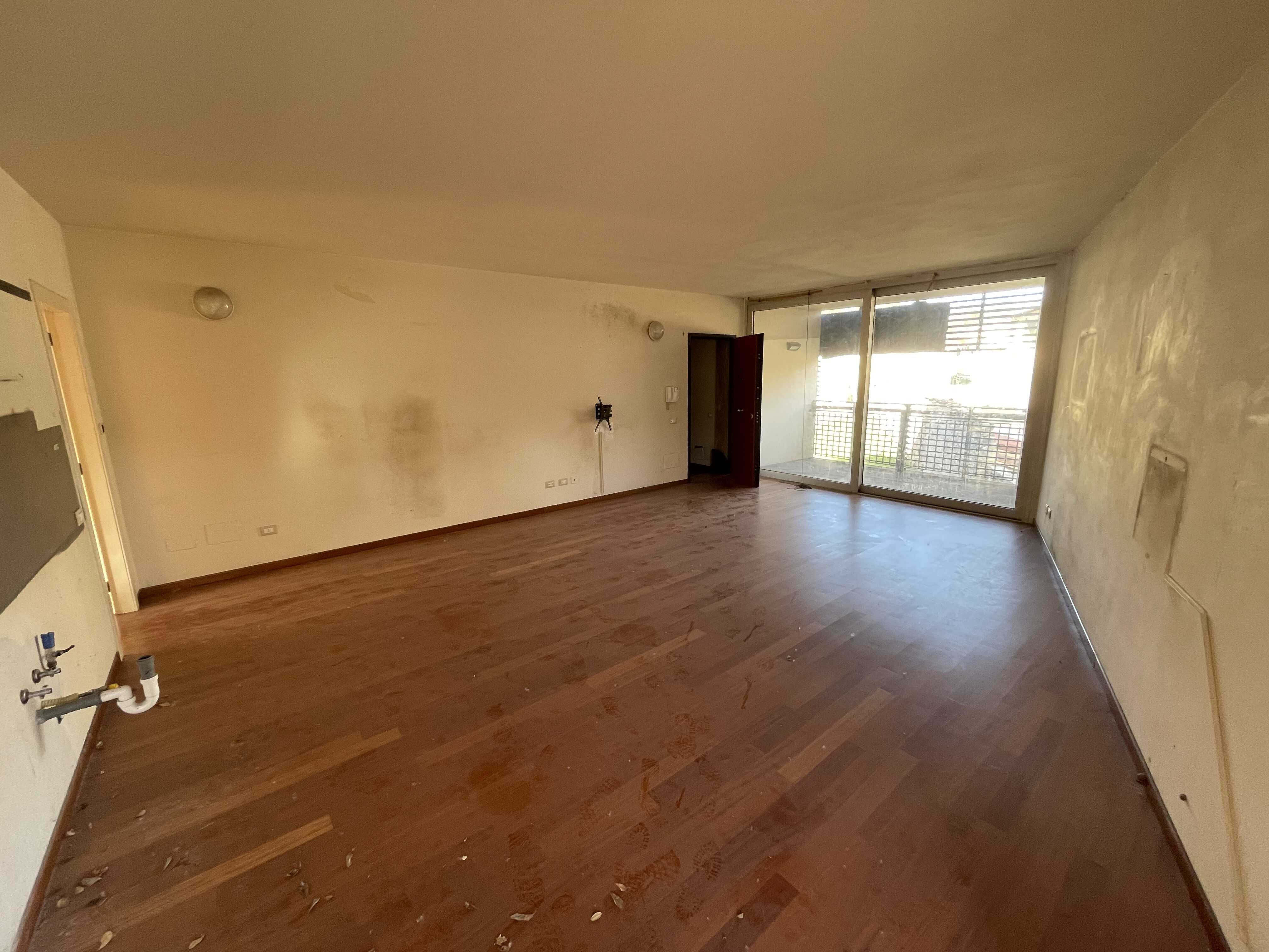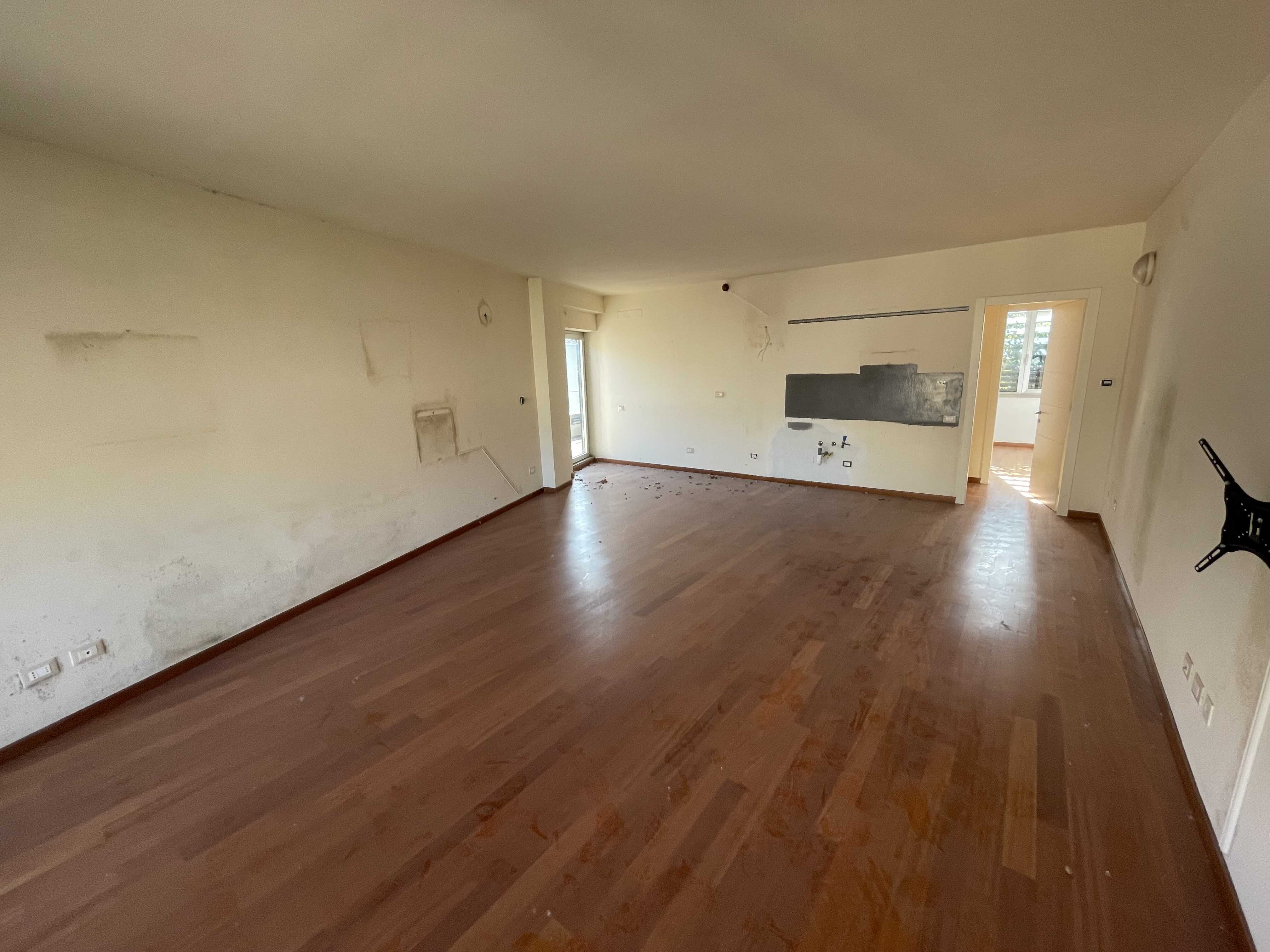 L’appartamento è posto al piano 1° di mq 103 è costituito da ampio soggiorno con angolo cottura, disimpegno, bagno, camera, camera con anticamera oltre a quattro terrazzi (due a servizio della zona giorno e due a servizio della zona notte). Il posto auto si trova al piano seminterrato 2° nelle immediate vicinanze dell'ingresso ed è costituito da una piazzola di circa 2,65 x 5,55 metri con altezza di 2,40 metri e superficie totale lorda pari a 18 m2 (si segnala che nella parete di fondo sono stati posizionate le tubazioni dell'impianto fognario condominiale). Sia L'appartamento che il posto auto risultano liberi.