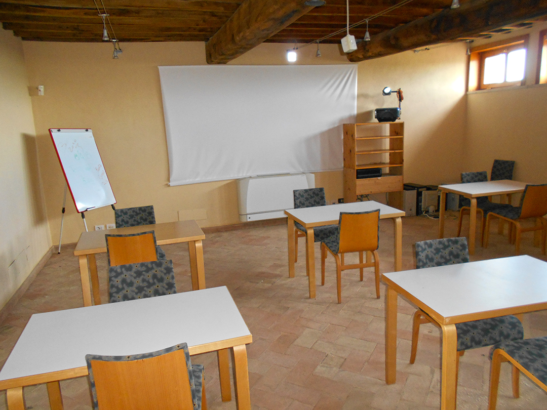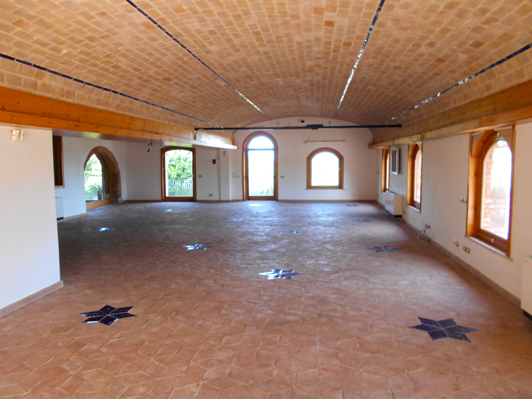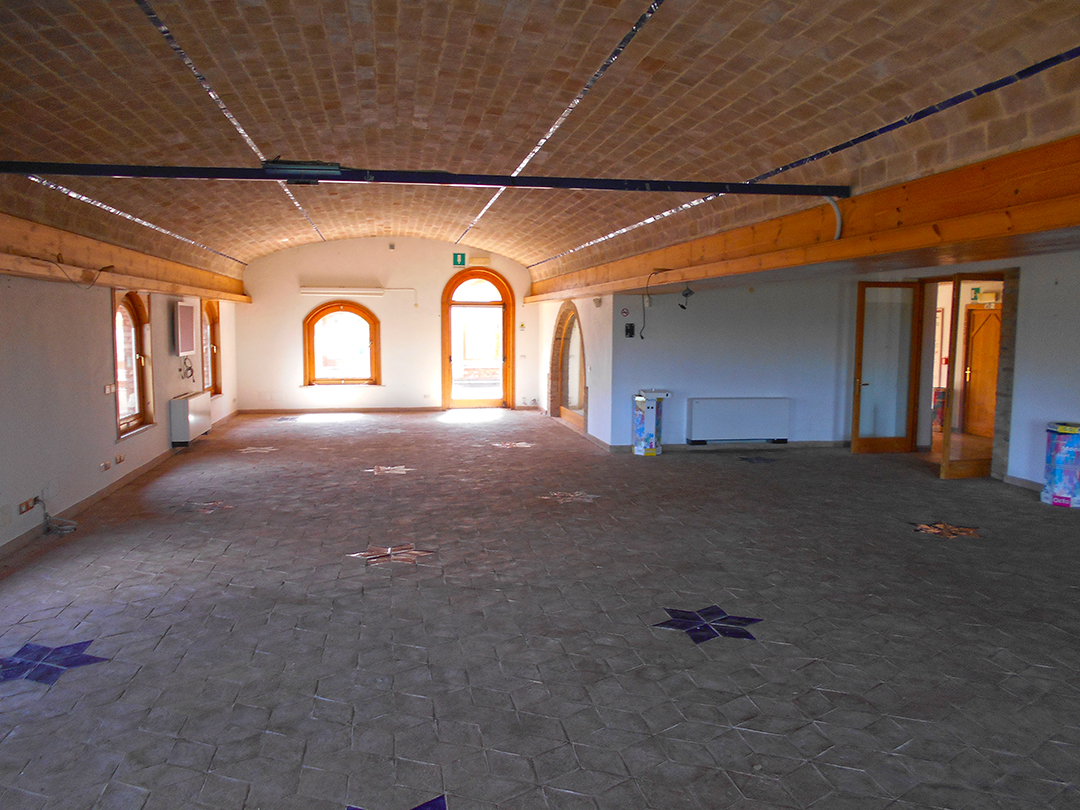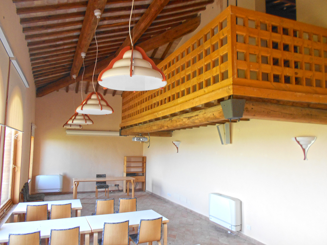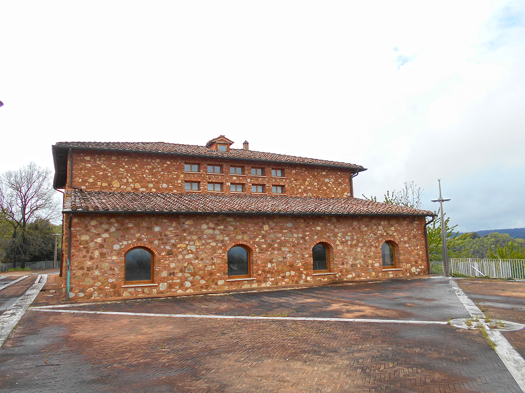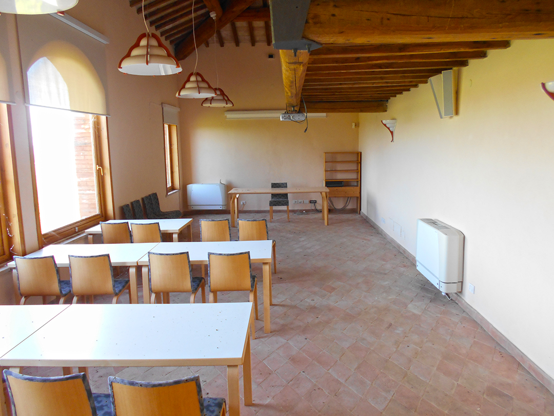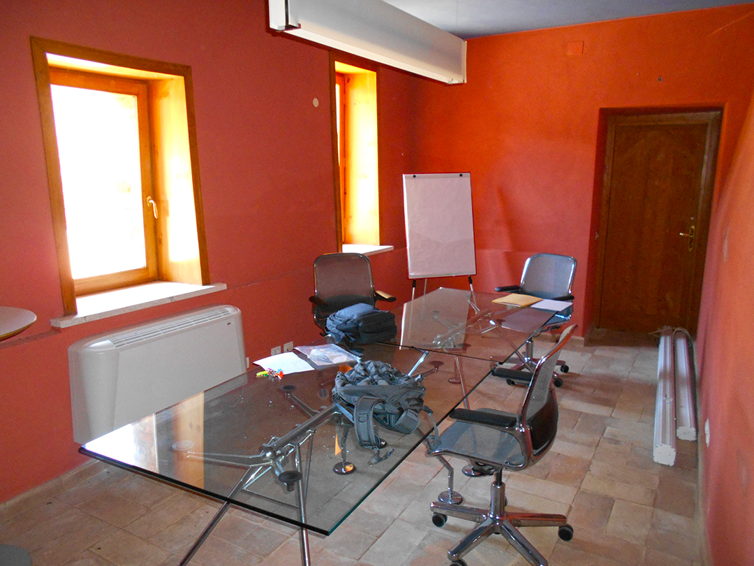 2) edificio principale su tre piani, con al piano terra accesso esterno ad ampia sala conferenze di circa 135 mq calpestabili; inoltre sempre con accesso esterno tre aule a cui segue un corridoio ed un ripostiglio, oltre ad antibagno e tre servizi, per altri circa 125 mq calpestabili. Dalla scala esterna si accede al piano primo costituito da tre aule e tre servizi con superficie calpestabile di circa 170 mq. Da una scala interna si accede all’ultimo piano costituito da un volume destinato a biblioteca (60 mq calpestabili) con accesso a due ballatoi che danno direttamente sulle sottostanti aule. In totale sono circa 625 mq commerciali.