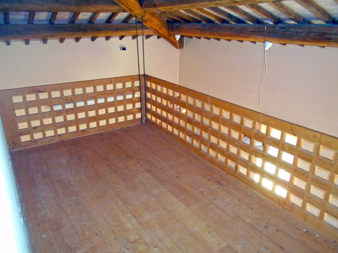 Piano primo costituito da un alloggio con uno spazio polivalente (cucina/soggiorno), un bagno e due camere per complessivi circa 50 mq calpestabili.