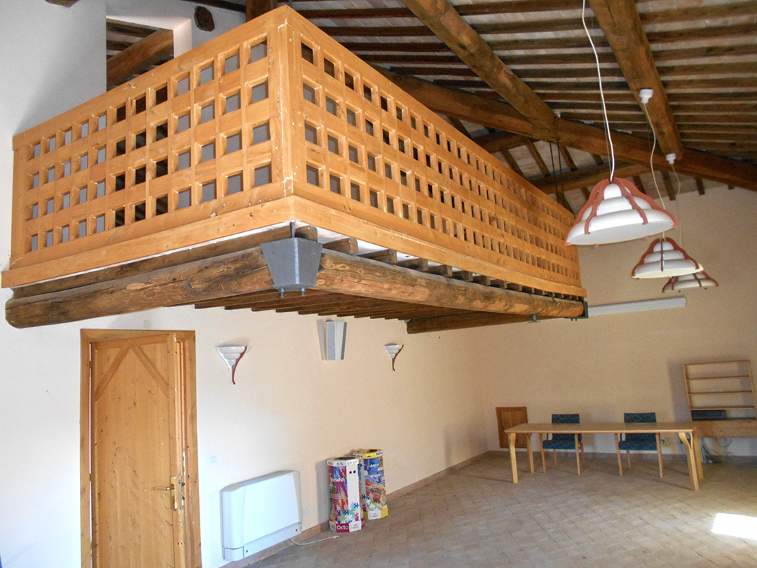 In prossimità dei locali cucina al piano terra, dall’esterno, è possibile accedere ad un piccolo volume che a sua volta, tramite scala interna, porta ad altri spazi del piano primo dello stesso edificio dove si trovano tre piccole aule ed un servizio (con antibagno) per complessivi circa 58 mq calpestabili. La superficie commerciale è circa 690 mq.