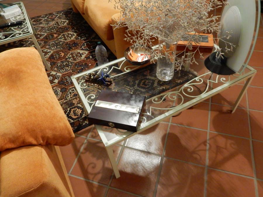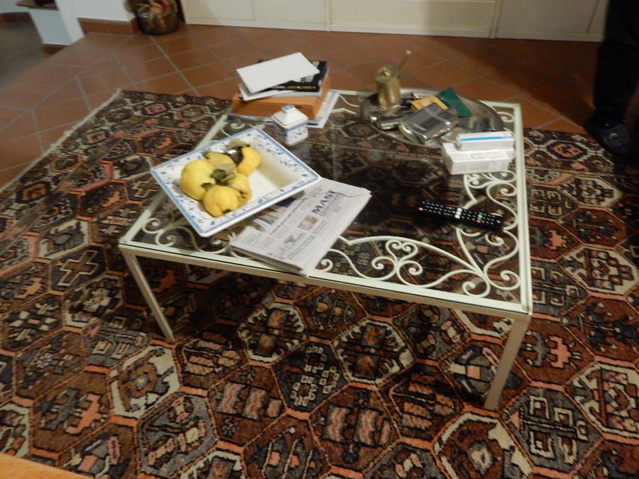 Arredo assortito usato composto da divani, tavolino tv, tv LG, mobile soggiorno, lampadari, vetrina, tappeti, specchiera, tavoli, sedie, ed altro.