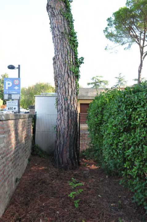 L’ingresso avviene dal cancello pedonale posto sul muro in mattoni che delimita la proprietà condominiale dalla prospiciente Strada dei Tufi. L’area esclusiva è delimitata da recinzione con rete plastificata su montanti metallici e dal suddetto muro di confine in mattoni. L’immobile confina con la corte condominiale al sub 117 e con la prospiciente Strada dei Tufi. La corte esclusiva è delimitata sul lato strada da un muro a mattoni e cancello di ingresso pedonale, mentre sugli altri tre lati è separata dalla corte condominiale del fabbricato mediante rete metallica di colore verde. Lo stato di manutenzione dell’area e della recinzione è buono. La pavimentazione della corte è con terreno naturale e gradini di accesso in muratura e non sono stati rilevati materiali da rimuovere.