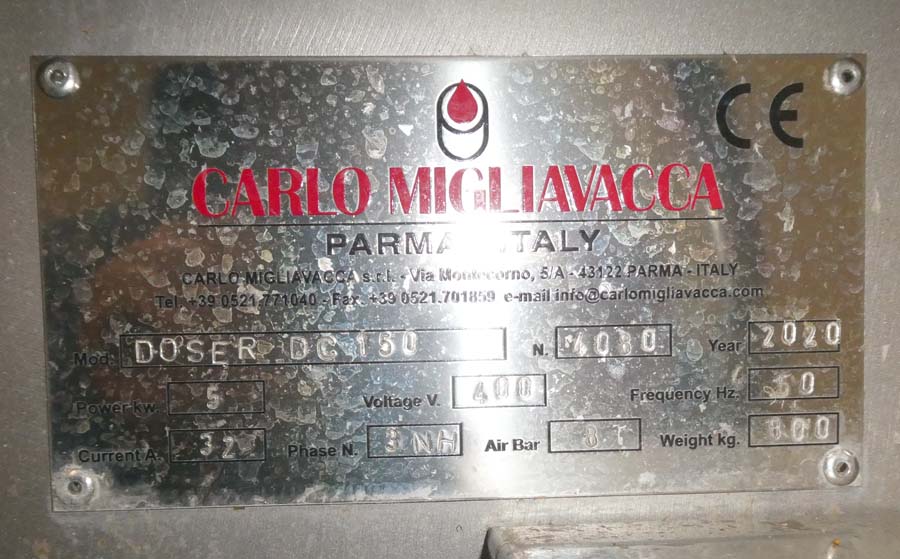 Lotto 3) Stazione dosaggio Carlo Migliavacca modello Doser DC 150 n. 4080 anno 2020, a servizio tavolo rotante in ingresso.