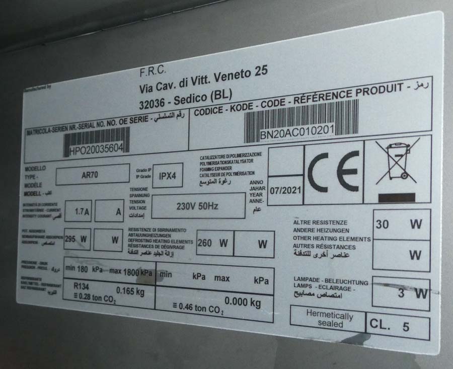 Lotto 9) Frigo positivo Friulinox AR70 anno 2021.