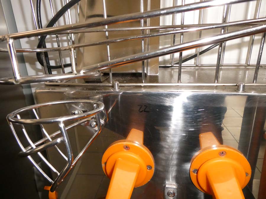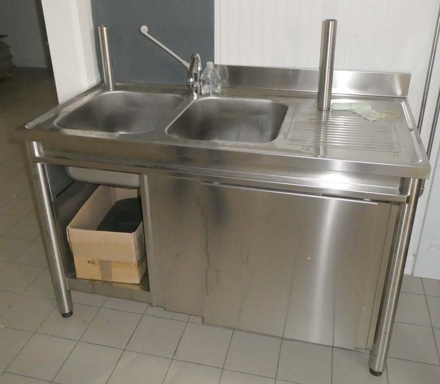 Lotto 22, 23) Spremiagrumi, Lavabo a due buche con sgocciolatoio, parte sottostante ante scorrevoli.