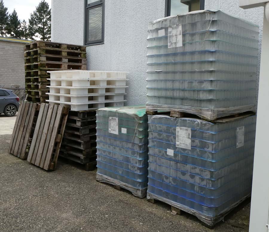 Lotto 51, 52) Tre pedane di vasetti + circa 120 pancali varie tipologie.