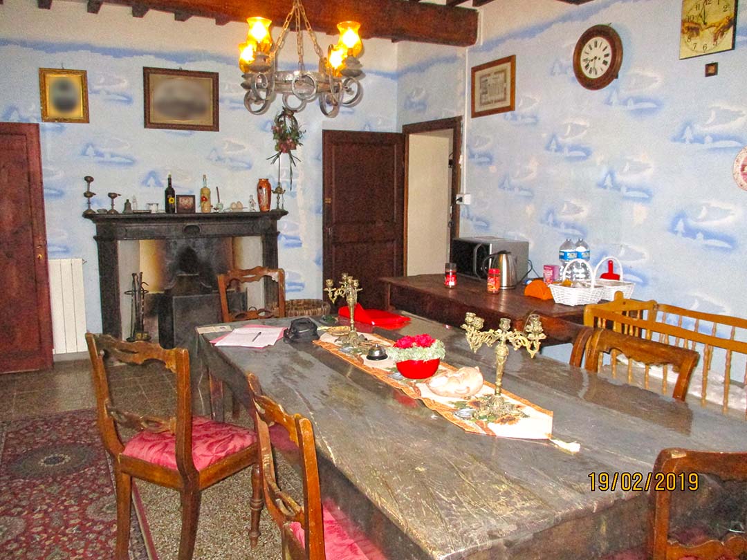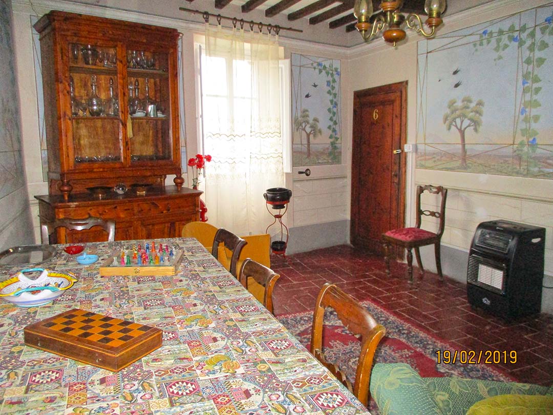 Compendio immobiliare composto da fabbricato ad uso abitativo, costruito con l’addizione di più corpi di fabbrica, di cui la parte più antica risalente al XVIII secolo, articolato in piano seminterrato, piano terra, piano primo e soffitte, per 423 mq di superficie catastale compresi gli ambienti di servizio, con aree scoperte di 423 mq ove insiste un piccolo edificio autonomo. Il complesso è corredato da terreni nelle aree prossime all’immobile.