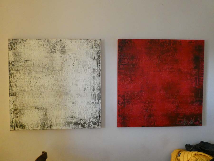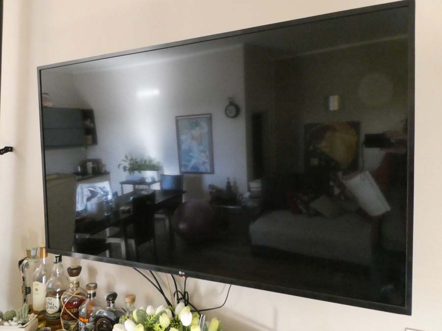 Televisore marca LG maxischermo; stufa a pellet Caminetti Montegrappa; divano a 3 posti in stoffa grigia; divanetto in stoffa a 2 posti: cassapanca in legno; divanetto in stoffa damascata bordeaux; mobile basso colore crema; n. 2 quadri uni rosso ed uno bianco.