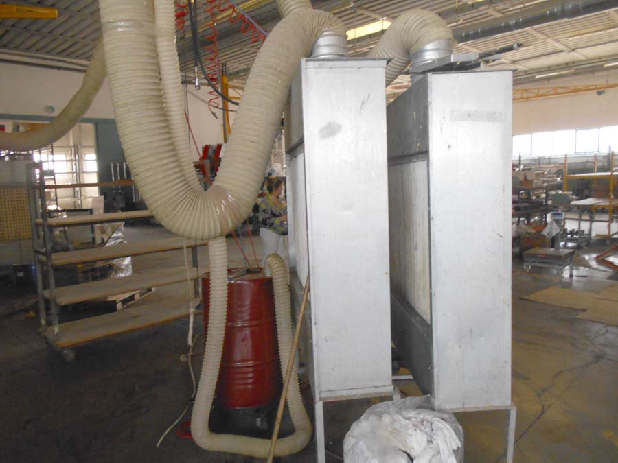 Lotto N. 11) Impianto aspirazione con postazione cassonata dei filtri di ausilio alle schiumatrici.