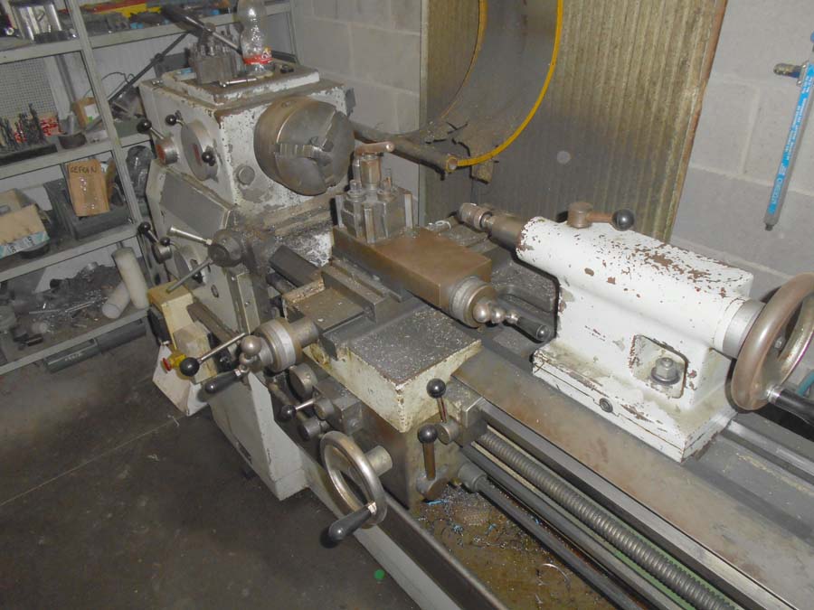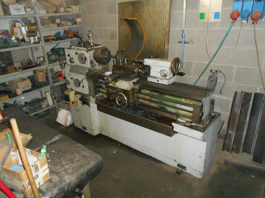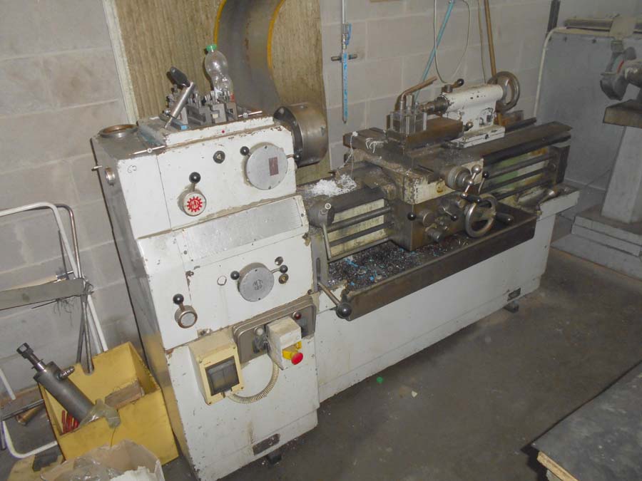 Lotto N. 67) Tornio di remota costruzione privo di identificativo ad esclusione della sigla MT180 -oltre armadio con strumenti di misura completo di teste per lavorazione.