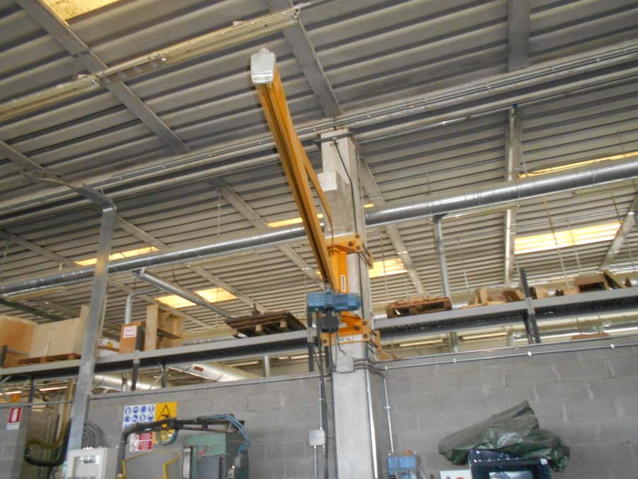Lotto N. 78) Gru a bandiera, ancoraggio a cravatta su pilastro con argano per spostamento attrezzi portata 500 KG.