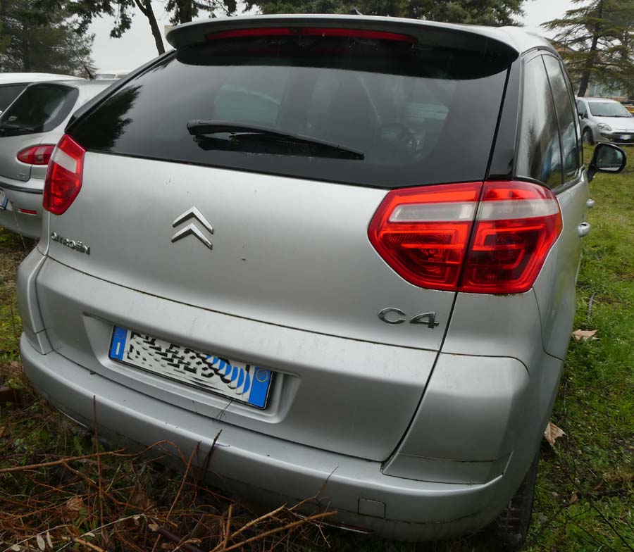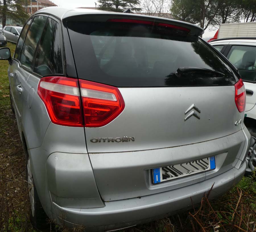 Autovettura Citroen C4 Picasso 1.6 HDI 110 FAP Elegance, data di immatricolazione 27/06/2007, cc 1560 alimentazione a gasolio, euro 4, kw. 80. Chilometraggio in occasione dell'ultima revisione datata 17/08/2021 pari a 201646, provvista di chiave e di libretto di circolazione, mezzo allo stato attuale non marciante.