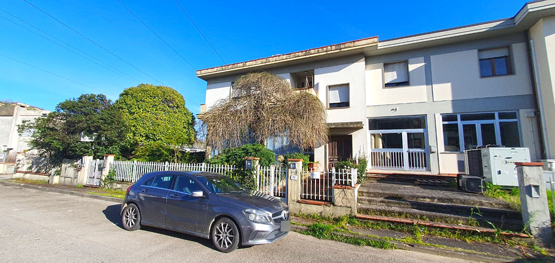 Appartamento composto da ingresso, soggiorno/pranzo, cucina, ripostiglio, bagno, w.c., due camere e tre terrazzi al piano primo. Il tutto integrato da due resedi esclusivi al piano terra, area esterna adibita a viabilità/parcheggio e diritti di comproprietà sulle parti comuni.