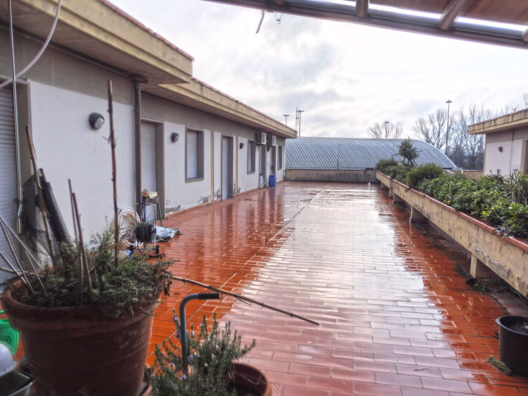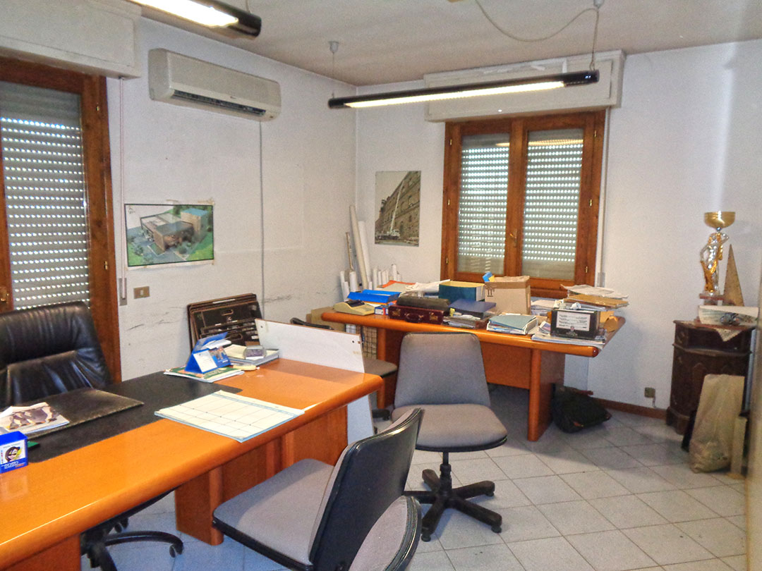 Ufficio dotato di doppio ingresso composto da ingresso, vano accettazione, otto vani ufficio e due servizi igienici al piano primo. Il tutto integrato da due terrazzi, area esterna adibita a viabilità/posti auto, e da diritti di comproprietà sulle parti comuni.