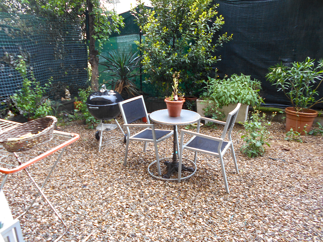 La corte privata (adibita a giardino), posta sul retro e accessibile dall'autorimessa, sviluppa una superficie arrotondata a circa mq 30.