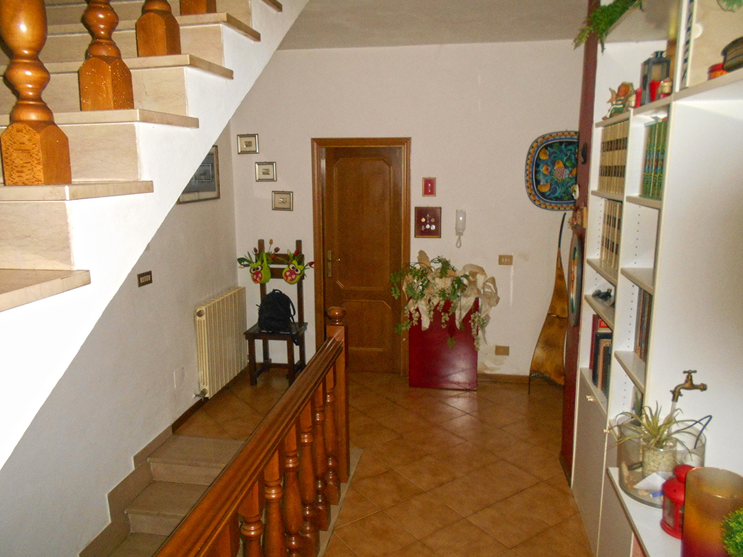 Abitazione composta al piano terra da ingresso/vano scala, ripostiglio, centrale termica e autorimessa, al piano primo da ampia zona giorno (soggiorno con cucina), antibagno, servizio igienico, vano scala e due balconi ed al piano secondo da tre camere, un servizio igienico, vano scala/disimpegno, balcone e ulteriore balconcino di solo affaccio, per una superficie lorda commerciale complessiva di circa mq 190,50, oltre mq 11,50 di balconi. Il tutto per una superficie utile interna di circa mq 18 al piano terra, mq 52 al piano primo, mq 55 al piano secondo ed una superficie lorda commerciale pari a circa mq 30 al piano terra, mq 63,50 al piano primo e mq 63,50 al piano secondo, oltre balconi per ulteriori mq 11,50 e balconcino.