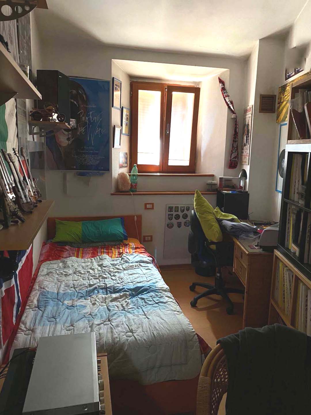 Diritto di proprietà nella misura del 50% appartamento di mq 44 al piano secondo ed è composto da piccolo disimpegno, due camere da letto, un servizio igienico e piccolo soppalco con annesso locale ad uso cantina posto al piano seminterrato.