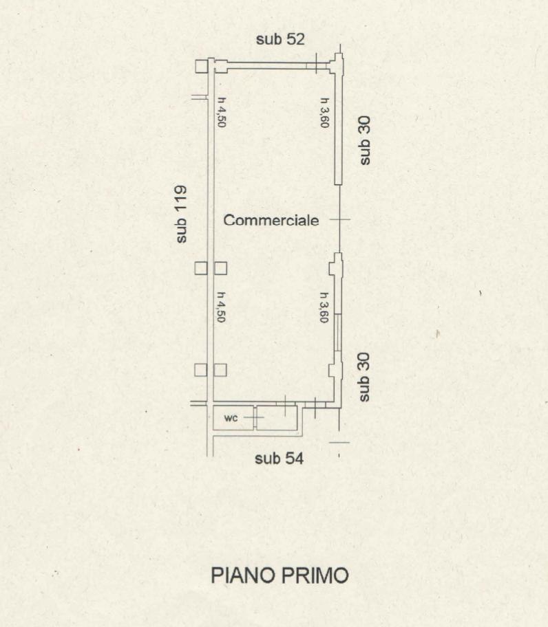 Locale commerciale al primo piano composto da un vano destinato a negozio diviso con pareti attrezzate in attesa, spogliatoio, zona lavorazione, ripostiglio, magazzino e disimpegno, con antibagno e servizio igienico. Superficie commerciale: mq. 112 circa.