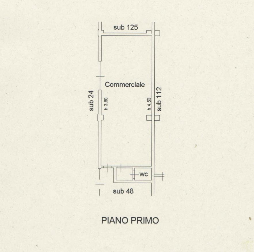 Locale commerciale al primo piano composto da un vano destinato a negozio con antibagno e servizio igienico. Superficie commerciale: mq. 110 circa.