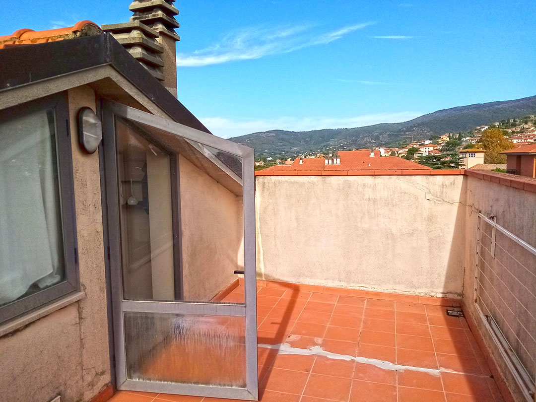Appartamento al terzo piano composto da soggiorno, cucina, disimpegno, due servizi igienici, due camere da letto, studio, tre balconi, scale di collegamento interne a cui si accede a locali sottotetto accessoriati da un terrazzo.