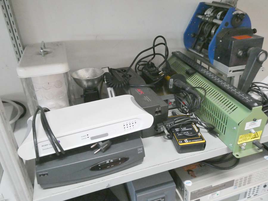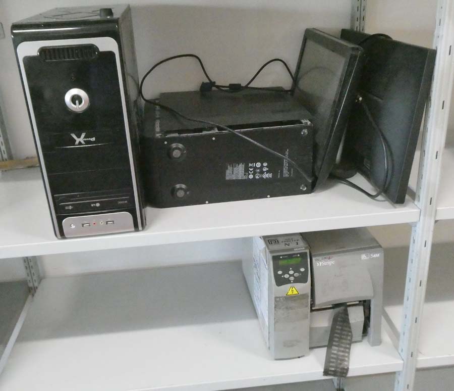 LOTTO A: Attrezzatura informatica varia, stampanti, gruppi di continuità, modem, aspiratore e altro + Lotto n. 64 - N° 3 USB Key Codesoft 9.1 PRO + Lotto n. 42 - Dima MTG coperchio su base Lotto n. 48 - Pressetta preformatura + Lotto n. 49 - Pressetta montaggio ferriti + Lotto n. 50 - Macchina sagomatrice rep. Pth.