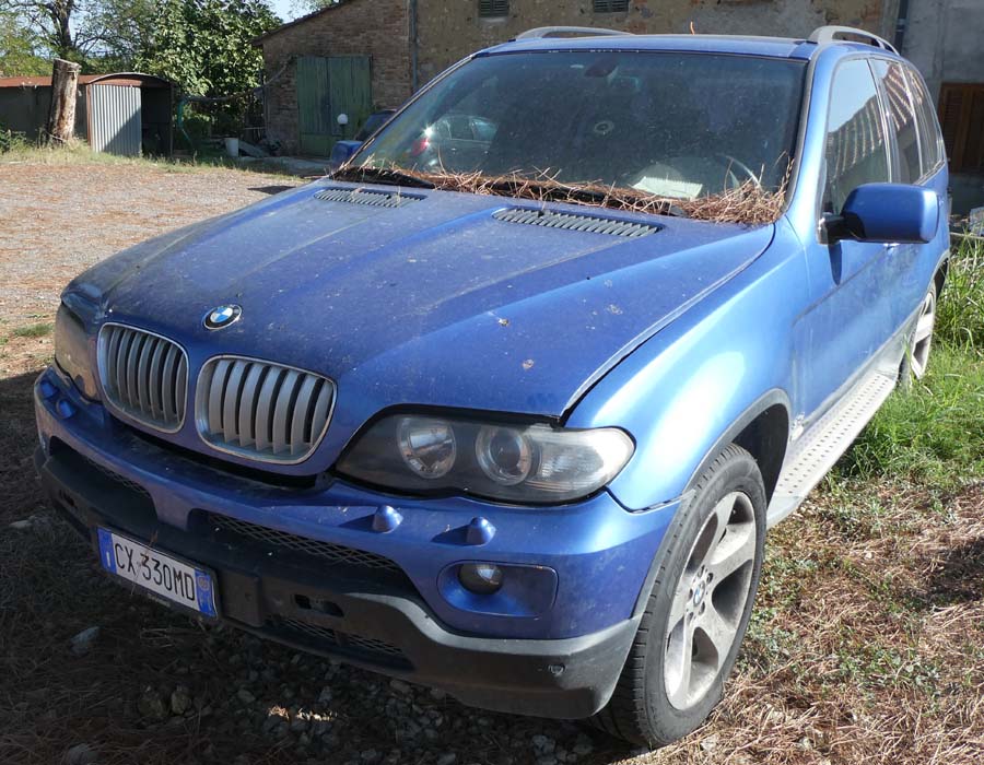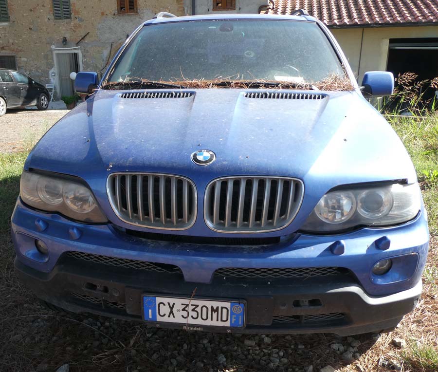Lotto 15) Autovettura BMW X5 targata CX330MD immatricolata nel 2005, alimentazione a gasolio interni pessime condizioni, barra interna cofano smontata, provvista di chiave e libretto di circolazione, sprovvista di C.d.P. .