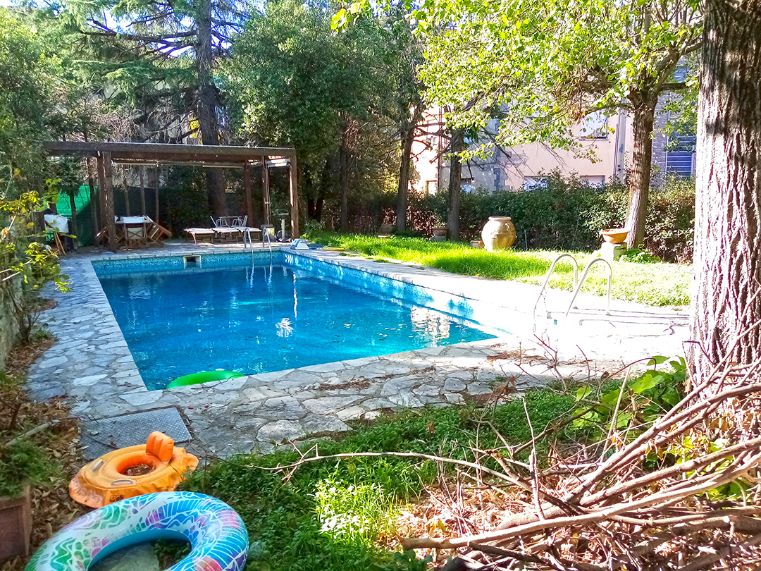 Abitazione su più livelli della superficie commerciale complessiva pari a mq 508,25, così composto: al piano seminterrato, da ingresso/antibagno, zona termale relax con docce e sauna, disimpegno, ripostiglio, cantina, vano tecnico, cantina, lavanderia, locale caldaia; al piano terreno da ingresso, disimpegno, cucina, soggiorno, camera e bagno; al piano primo da disimpegno, soggiorno con ampio terrazzo, studio, cucina, due camere e due bagni; al piano secondo/sottotetto da disimpegno, tre locali adibiti a soffitte, terrazza posta sul tetto; il tutto corredato da resede esclusivo sul quale insistono: “sala ascolto” e garage; piscina; serra.