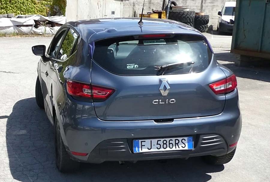 Lotto 3) Autovettura Renault Clio targata FJ 586 RS immatricolata il 6/06/2017, alimentazione a benzina, cc 1149, KW 54, chilometri da tachigrafo 87.119, provvista di chiave e libretto di circolazione.