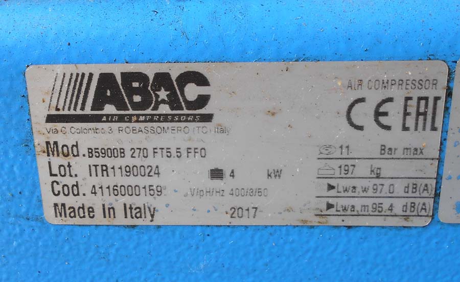 Lotto 1) Compressore ABAC B5900B Lotto ITR1190024 anno 2017.