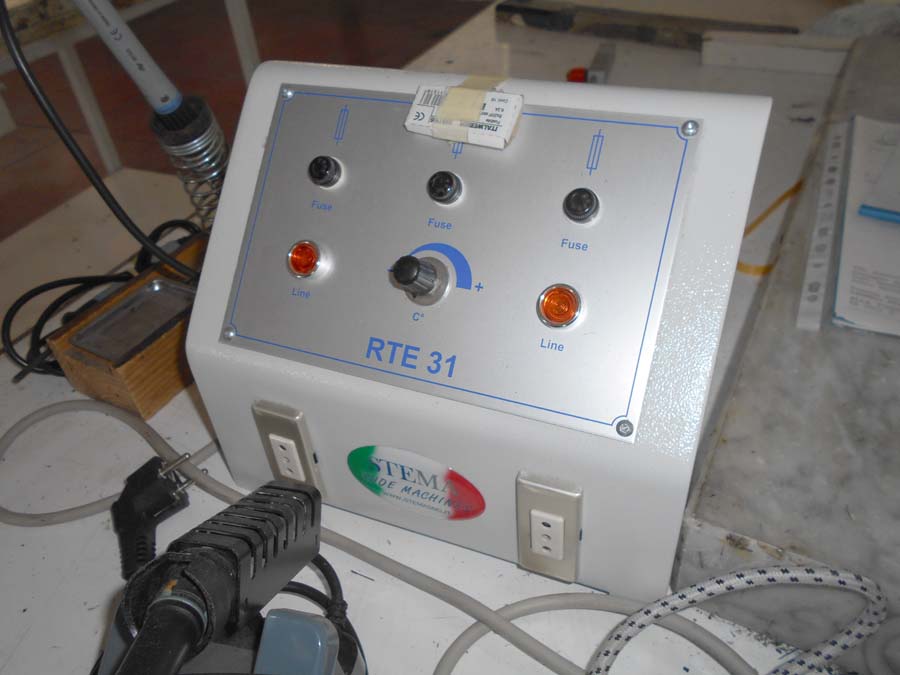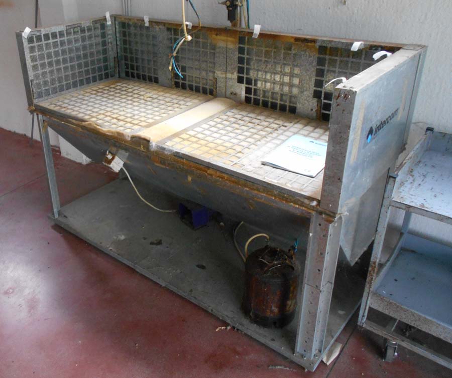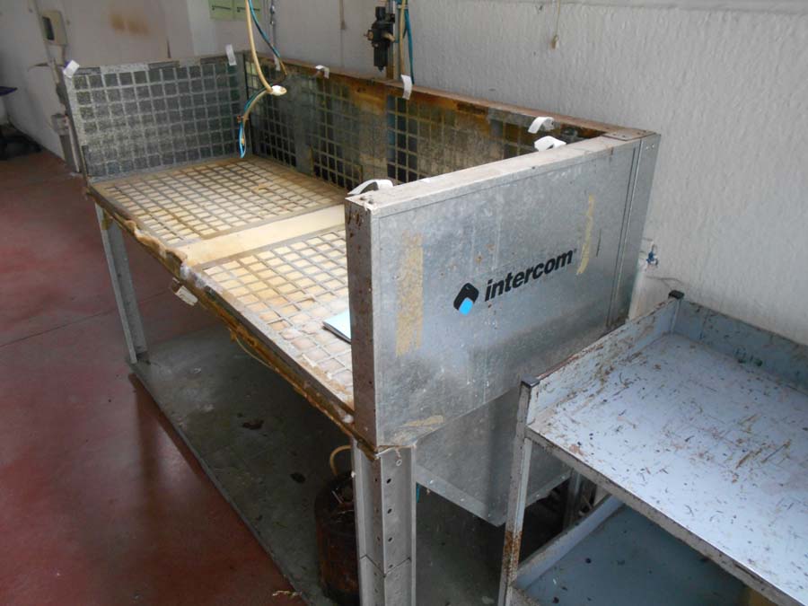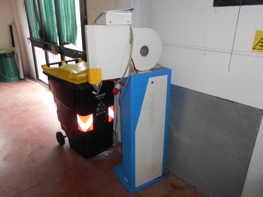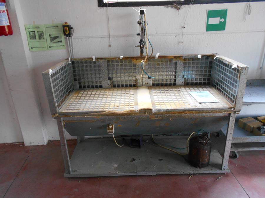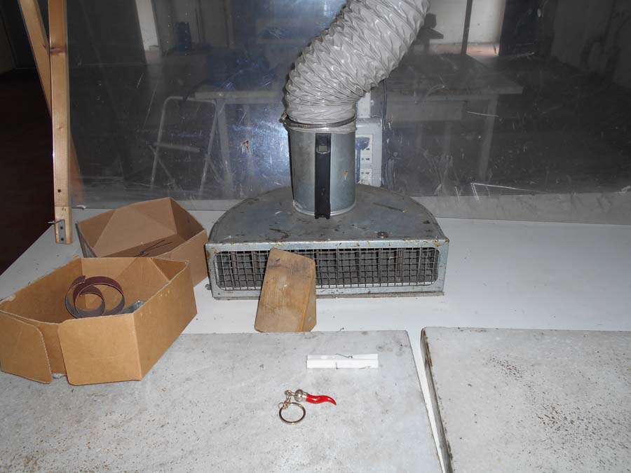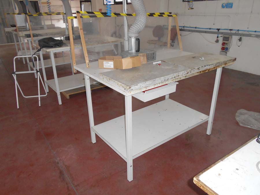 Lotto 2) N. 2 condizionatori composti da unità interna ed esterna, Aspiratore dismesso, Materiale per aspirazione dismesso, N. 4 banchi da lavoro con aspirazione, Banco da lavoro con macchinario lattice Satum, Regolatore di temperatura RTE 31 e 4 stazioni per lavorazione pelle, banco per incollaggio aspirante marca Intercom, banco su ruote con tingi bordo Omac, bidone immondizia, soffione Elvi, n. 2 pinze a pedale manuale, n. 3 armadietti per spogliatoio, stufetta elettrica, due scrivanie e tre sedie, n. 5 sgabelli e 2 banchetti artigianali.
