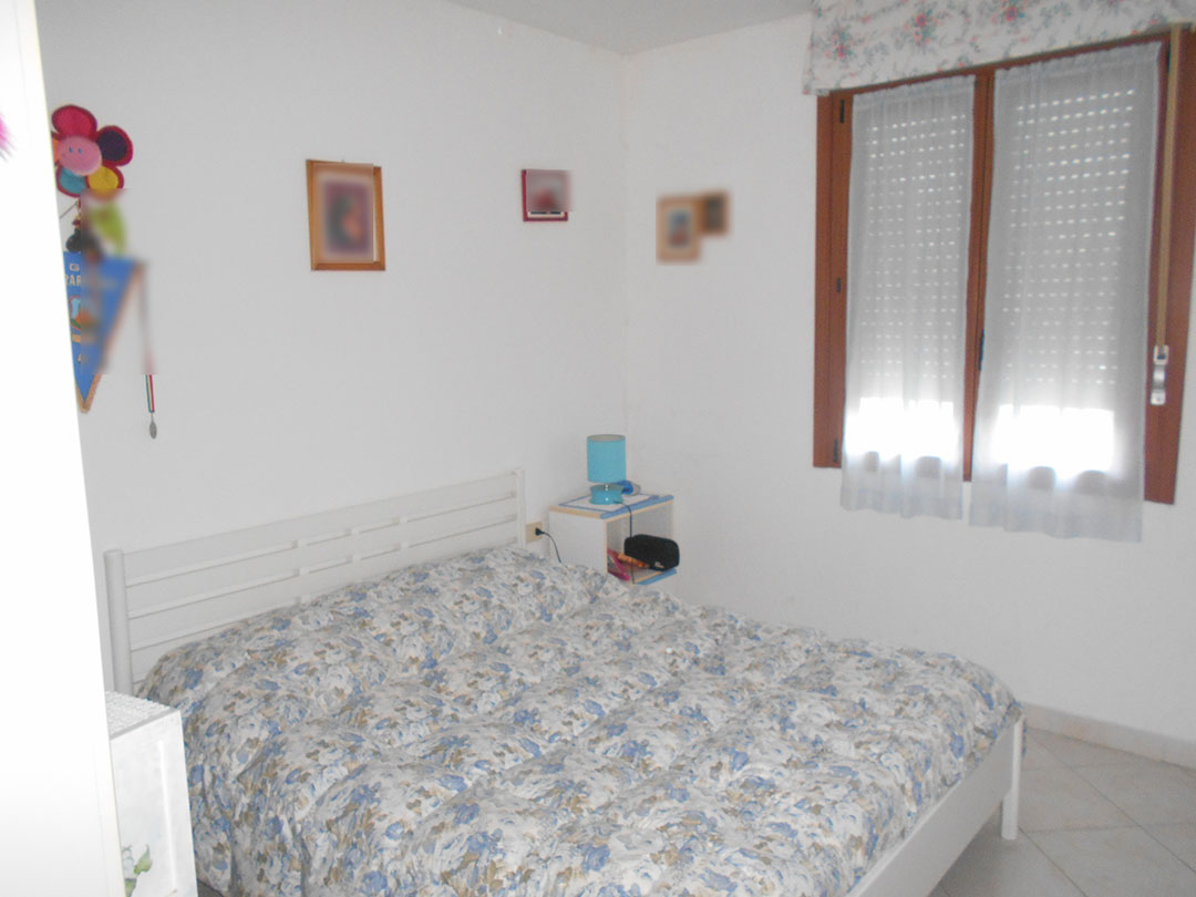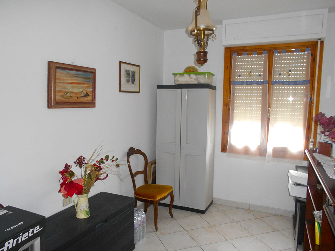 Abitazione di mq 112 al piano secondo composto da ingresso, cucina, soggiorno-sala da pranzo, disimpegno, due bagni, quattro camere da letto, ripostiglio e due balconi. Con autorimessa a corredo.