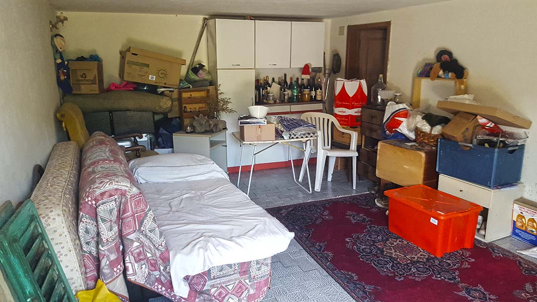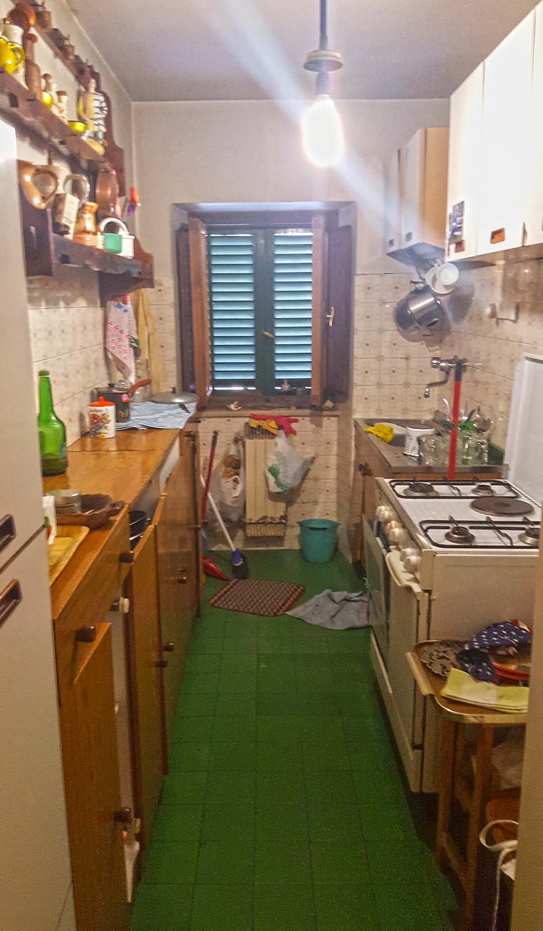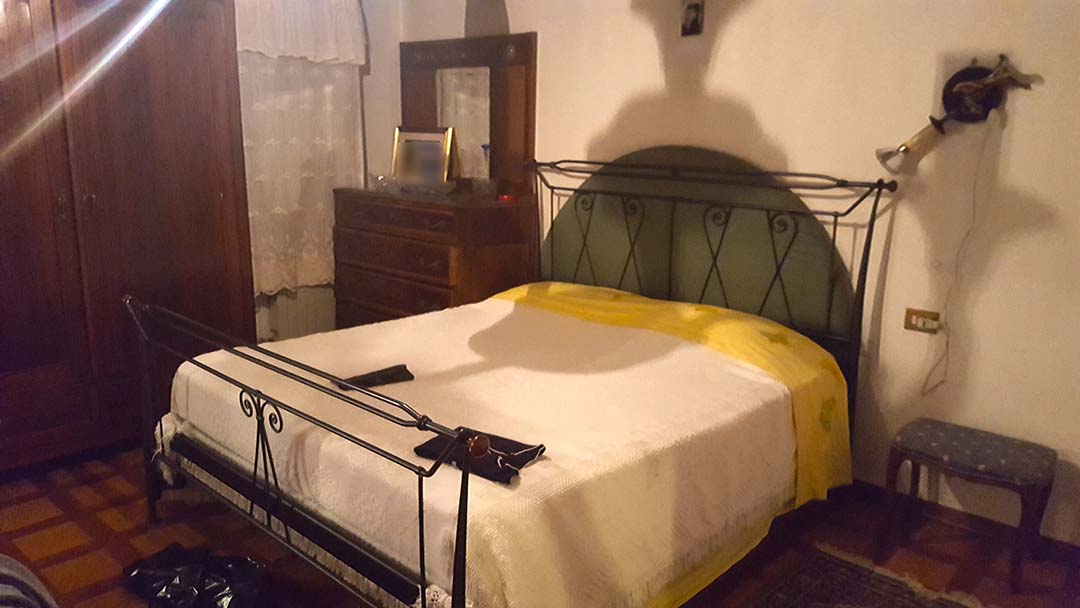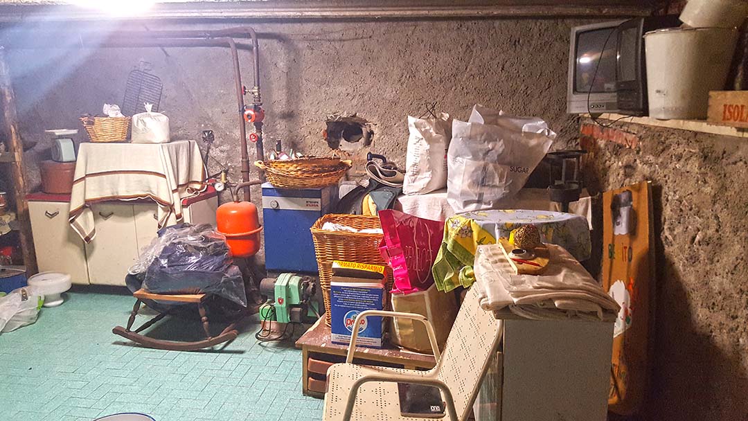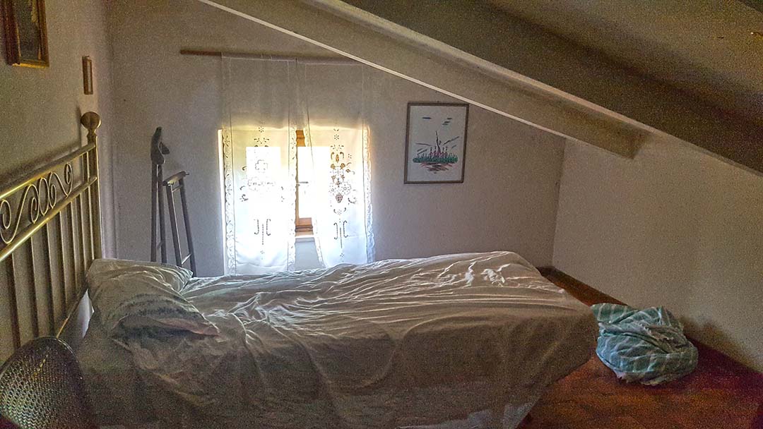 L'unità immobiliare è composta al piano terreno da 2 vani uso cantina e sottoscala; al piano primo, al quale si accede dalla corte esterna tramite rampa. scala esterna e loggiato (entrambi esclusivi), da ingresso-tinello, soggiorno, disimpegno, cucinotto, loggiato dal quale si accede ad un piccolo wc; al piano secondo da disimpegno, 2 camere e servizio igienico; al piano terzo da disimpegno, 1 camera mansardata e vano uso soffitta; il tutto collegato internamente (dal piano seminterrato al piano terzo) tramite rampe e scale interne ed integrato da resede esterno ad uso piazzale e verde della superficie di circa mq 140 posto nelle vicinanze dell'unità immobiliare.