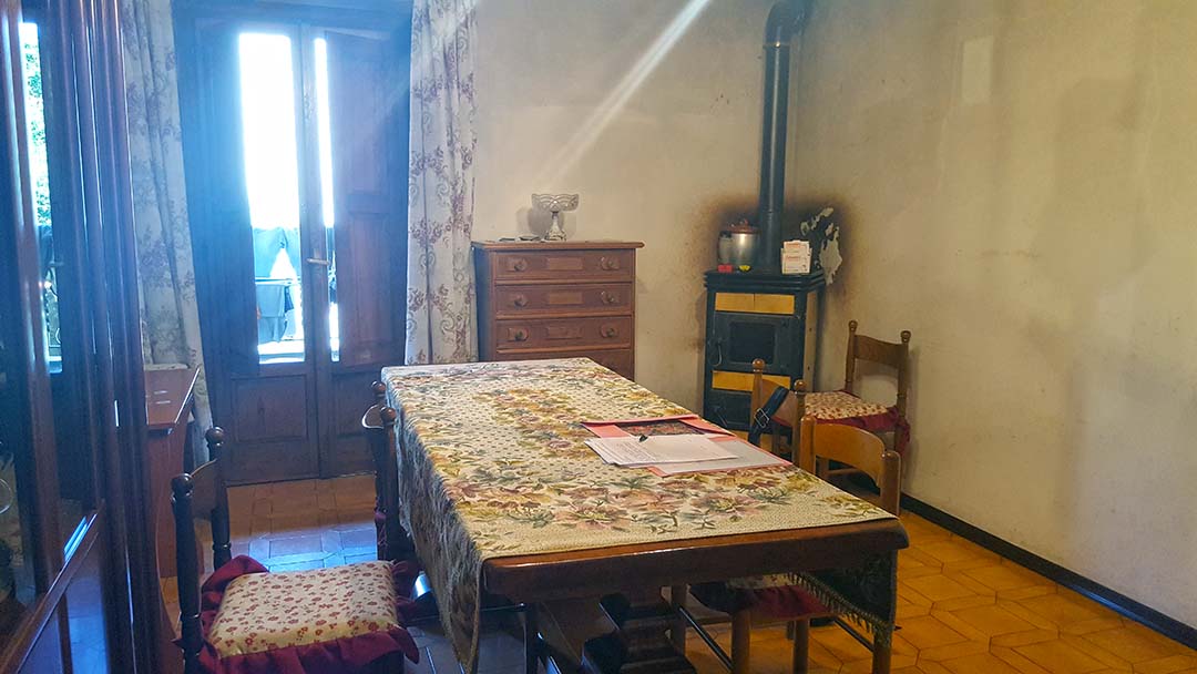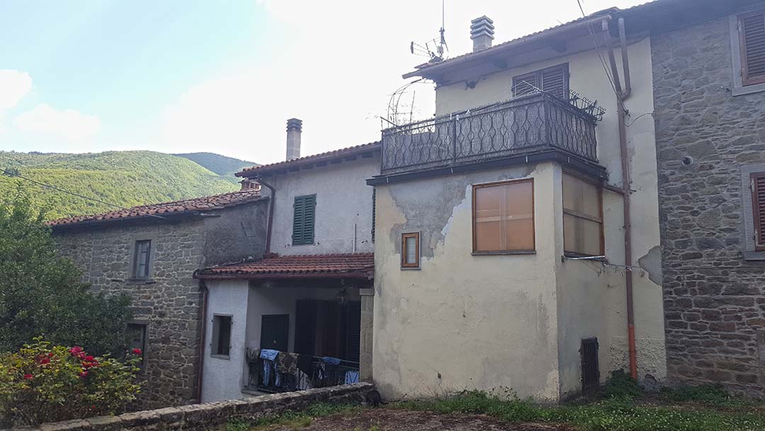 Fabbricato residenziale composto da 6 vani, oltre 6 vani accessori, disposto ai piani terreno, primo, secondo e terzo oltre terreni a uso agricolo e boschivo, per la quasi totalità non edificabili, utilizzati in parte come seminativo e in parte come bosco ceduo e misto, aventi accesso tramite viabilità vicinali e private.