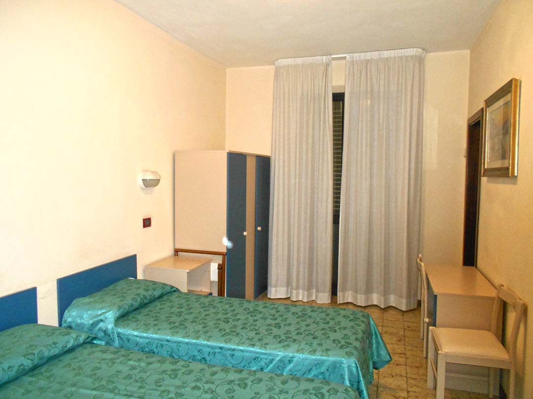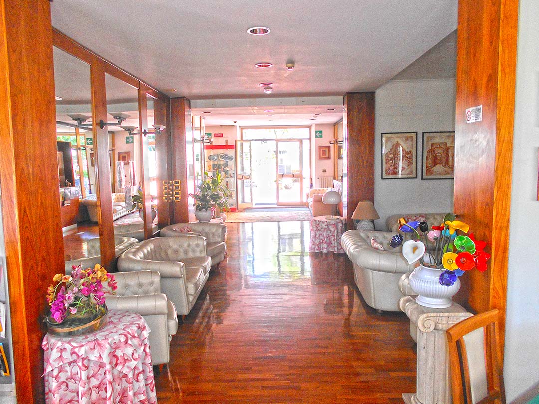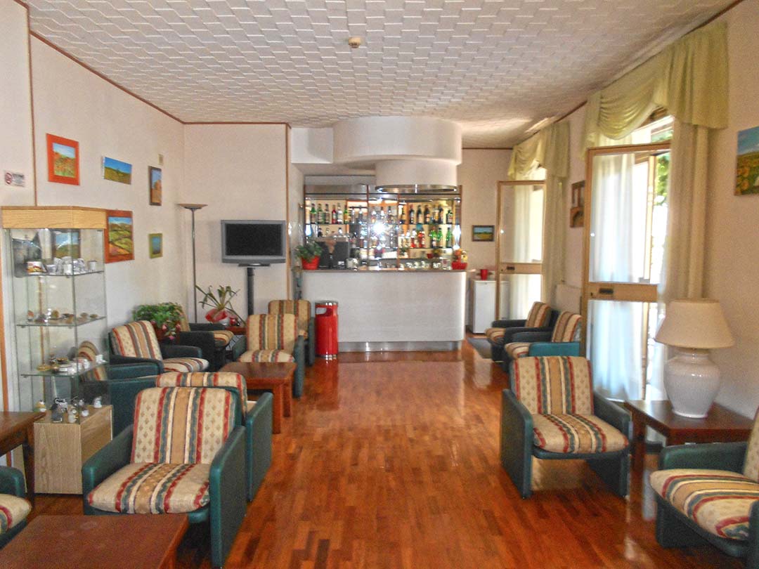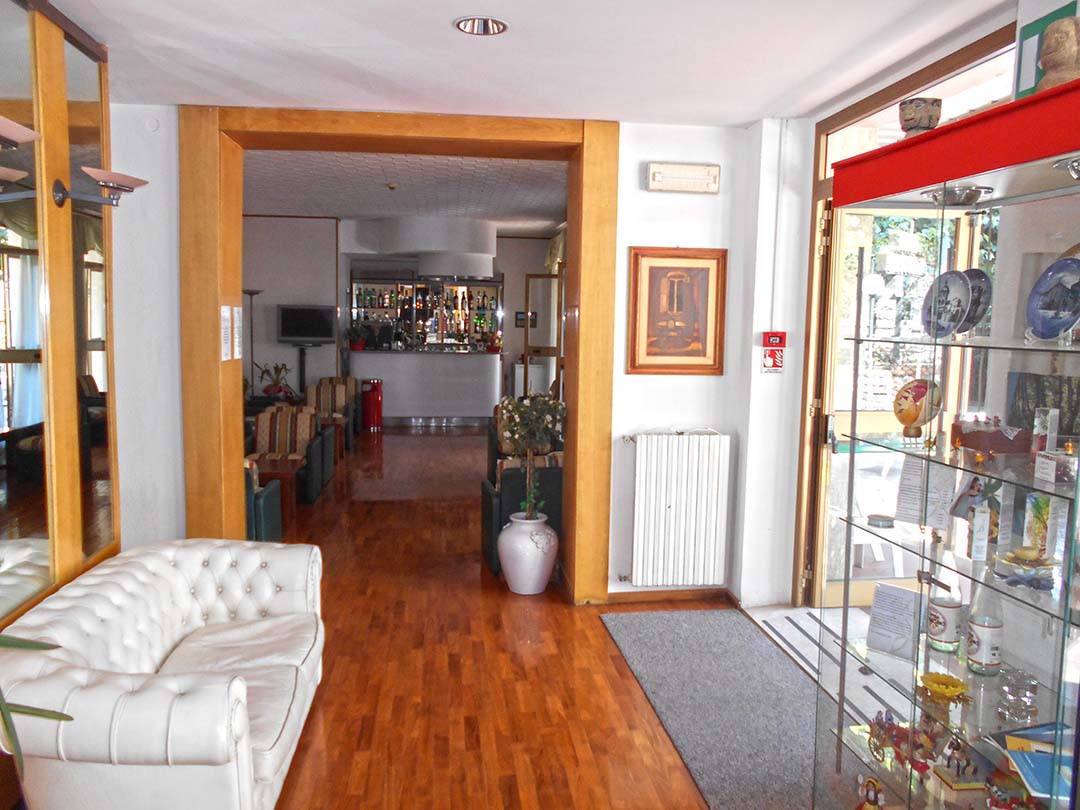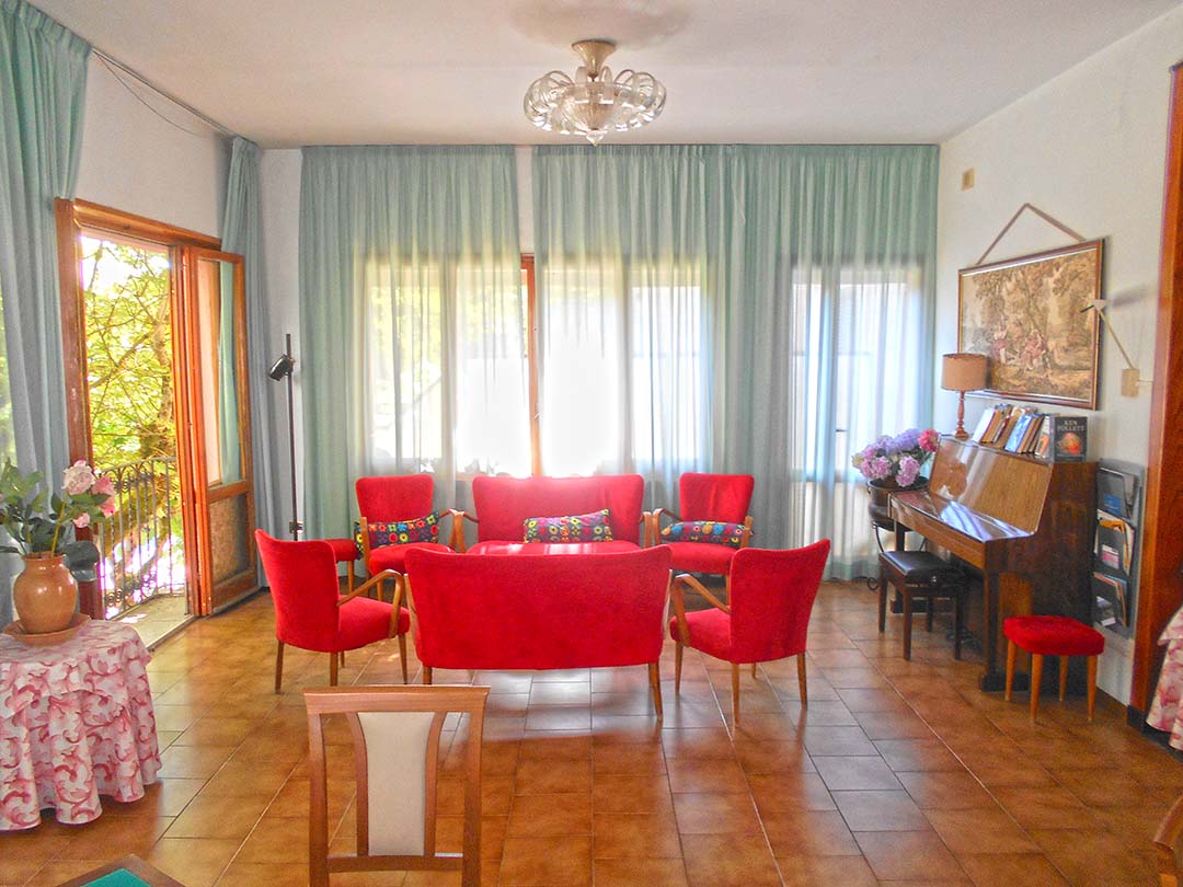 al piano terreno da accoglienza, soggiorno, bar, due camere da letto con bagno laterali rispetto all’accoglienza e disimpegno su cui si affacciano sette camere da letto con bagno;
