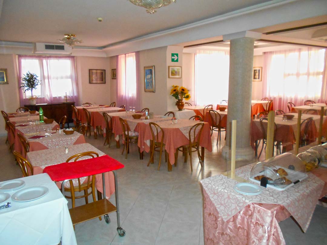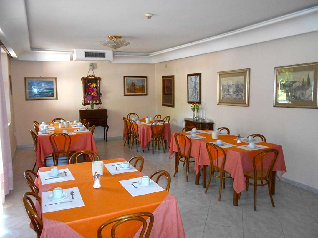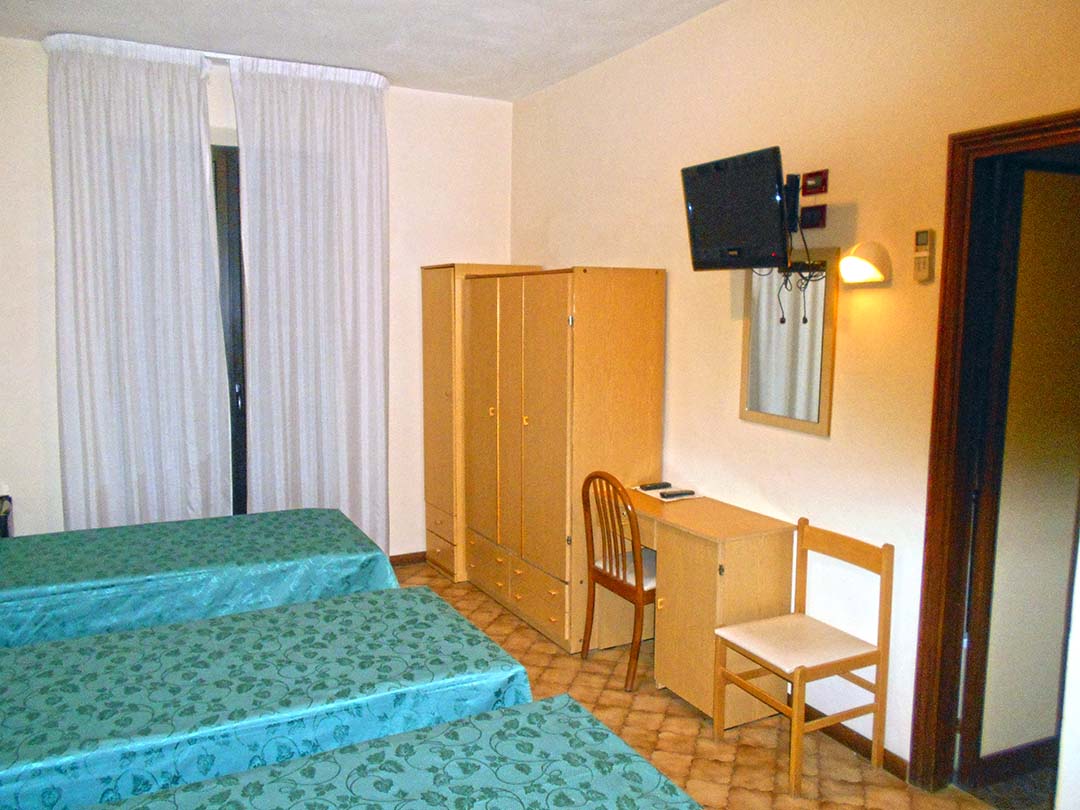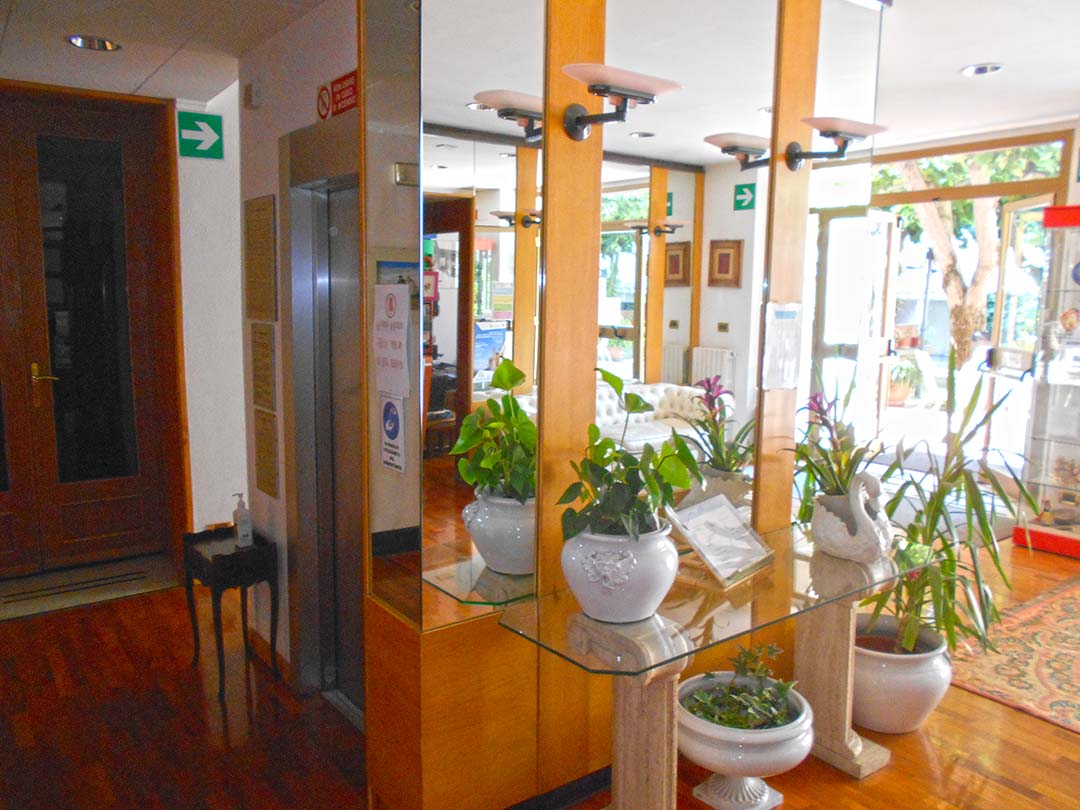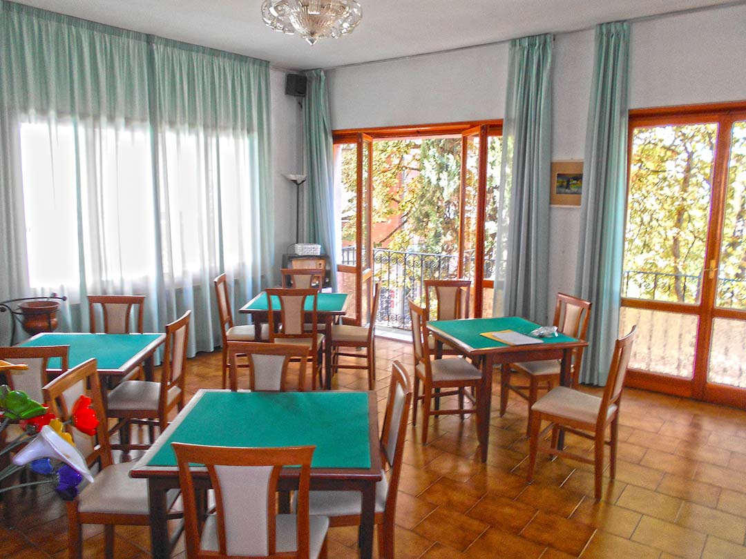 al piano terreno da accoglienza, soggiorno, bar, due camere da letto con bagno laterali rispetto all’accoglienza e disimpegno su cui si affacciano sette camere da letto con bagno;
