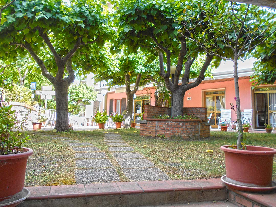 Albergo con giardino fronte strada e area attualmente adibita a parcheggio sul retro, composto: