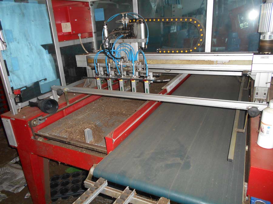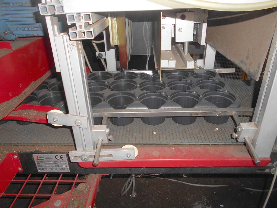 Lotto 13, 14, 15, 16) N. 2 riempitori Da Ross, N. 2 Pindstrup Hosebrug colore blu, N. 3 disimpilatori Da Ross e macchine invasatrice trapiantatrice.