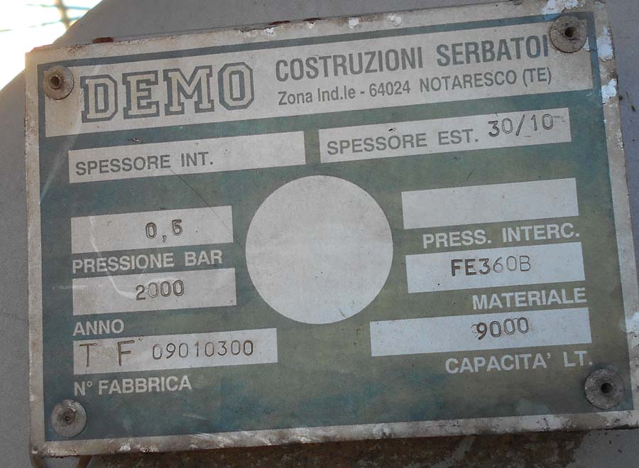 Lotto 19) Cisterna per gasolio 9000 lt.
