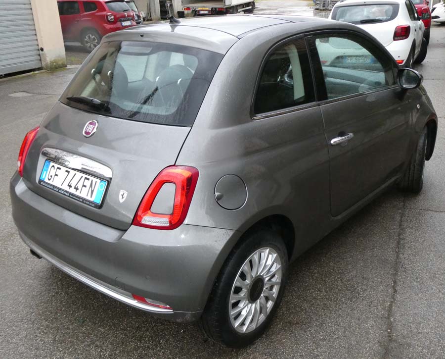 Autovettura Fiat 500 targata GF744FN, data immatricolazione 17/06/2021, euro 6, Km in occasione dell 'ultima revisione datata 26/07/2023 pari a 41.598 con esito regolare.