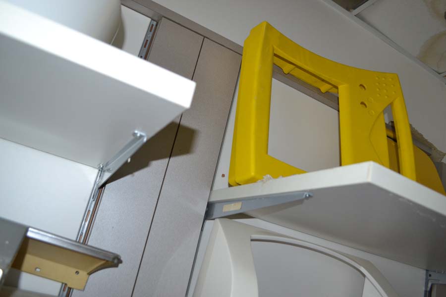 Lotto n. 234: N°1 espositori a parete con 4 moduli/mobili tecnici 116×223 cm con 13 mensole 50×90 cm.